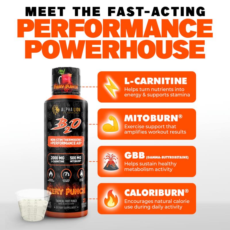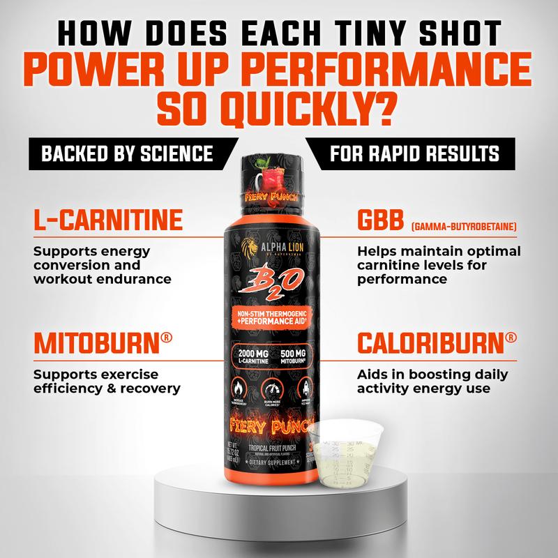 A non-stimulant performance shot designed to support energy production, focus, and endurance. With a unique blend of L-Carnitine, Mitoburn®, Caloriburn®, and GBB, Burn 2O helps you power through workouts, stay sharp, and feel your best—all in a convenient ready-to-drink shot.