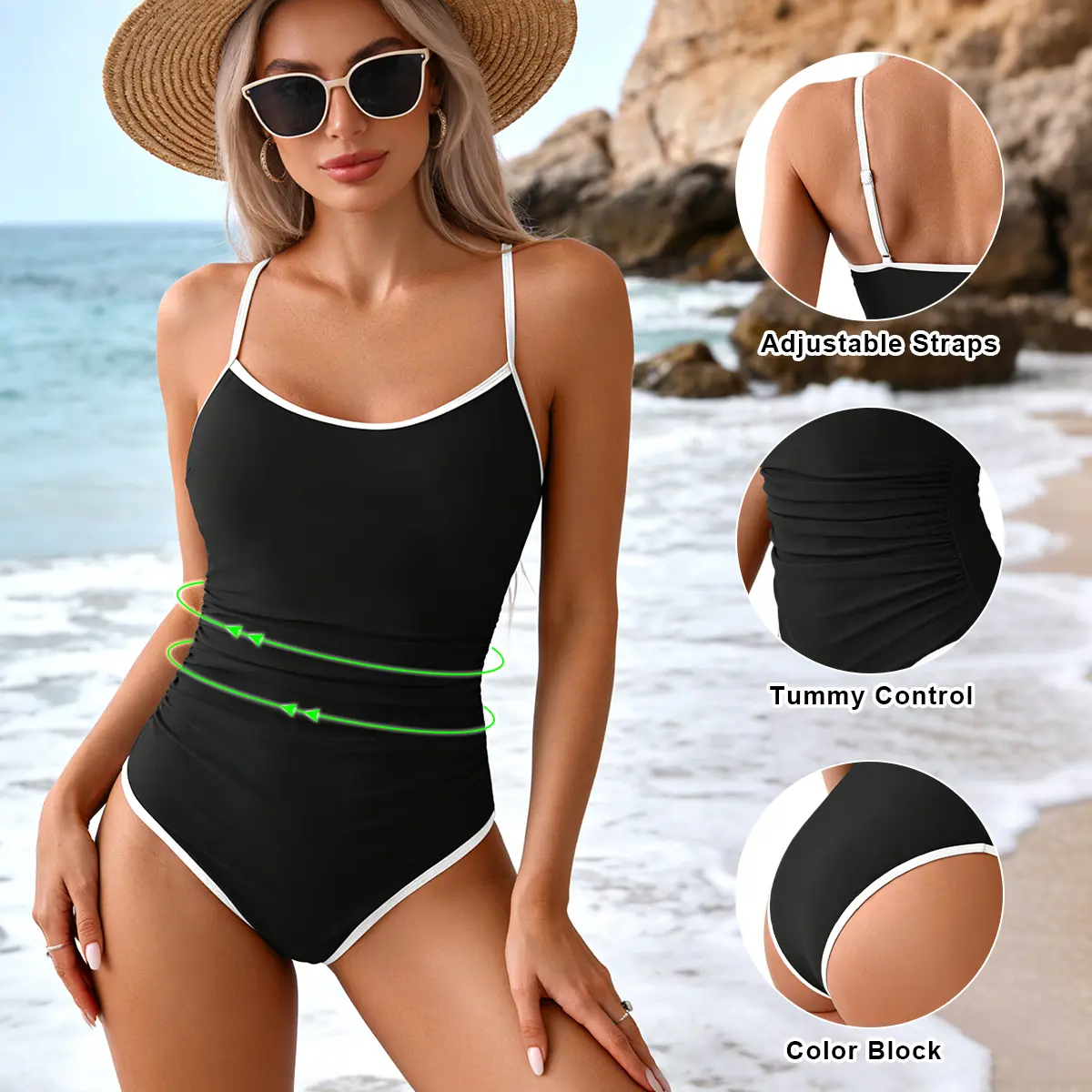 【Feature】Eye-catching color block design, removable soft padded bra support well, double-lined, adjustable spaghetti straps fix the swimsuit well, and make you more relaxed when playing.