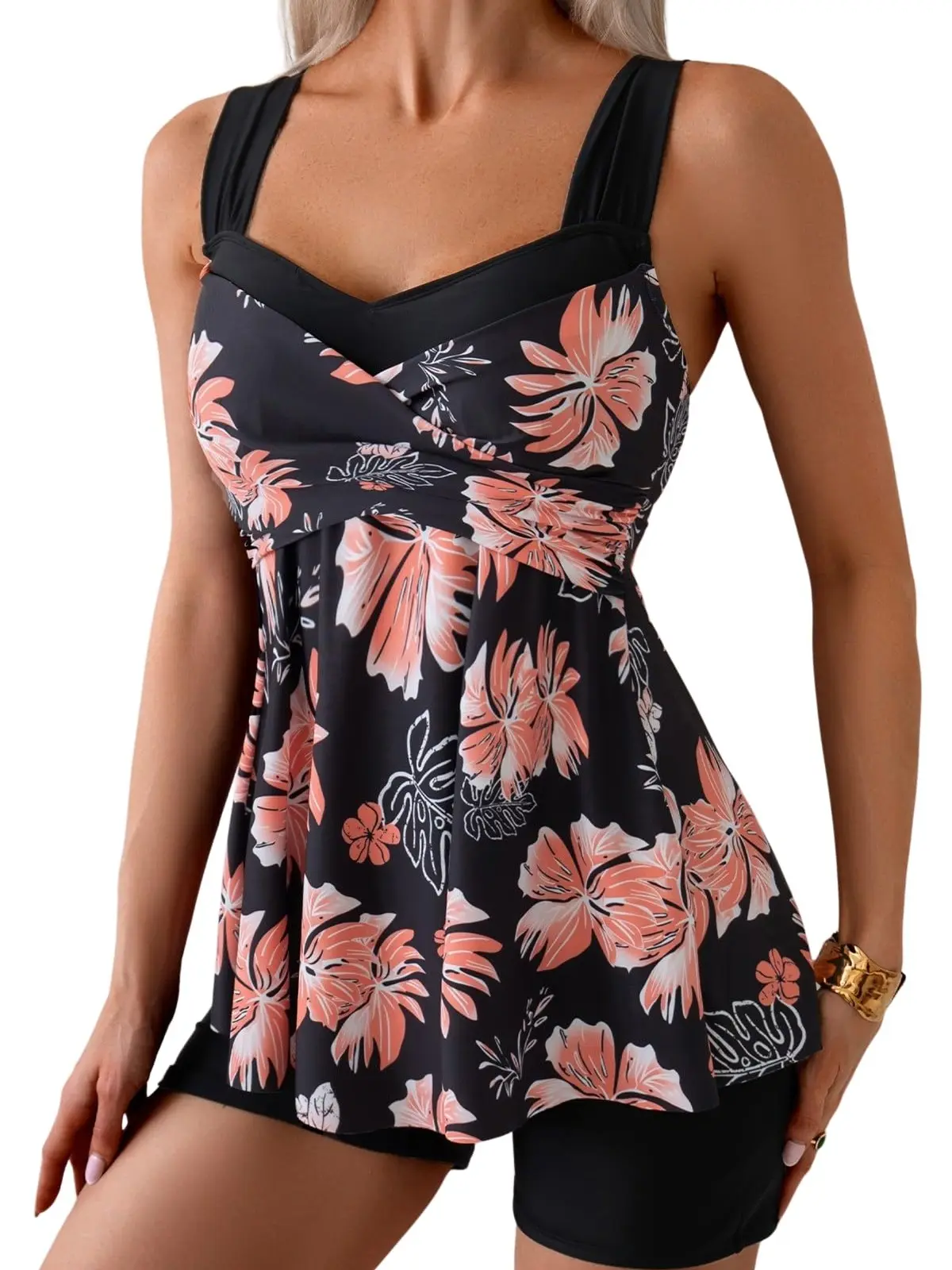 ·Stylish Design: The tankini top boasts a fashionable and retro floral print that showcases your style and charm. This tank top covers everything you want, hiding your tummy while highlighting your allure, ensuring you look truly captivating