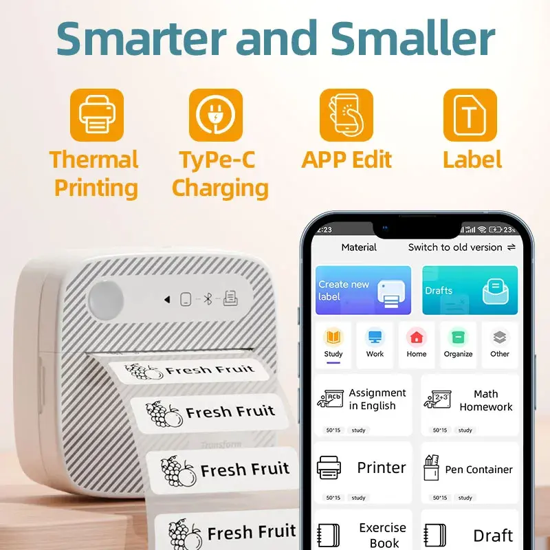 This model features Type-C charging, a 1200mAh rechargeable battery, and app-based editing functions such as templates, text, and simple layout customization. It is suitable for memo printing, study notes, to-do lists, labels, and DIY paper projects.