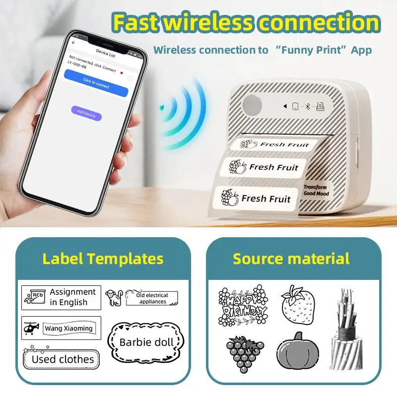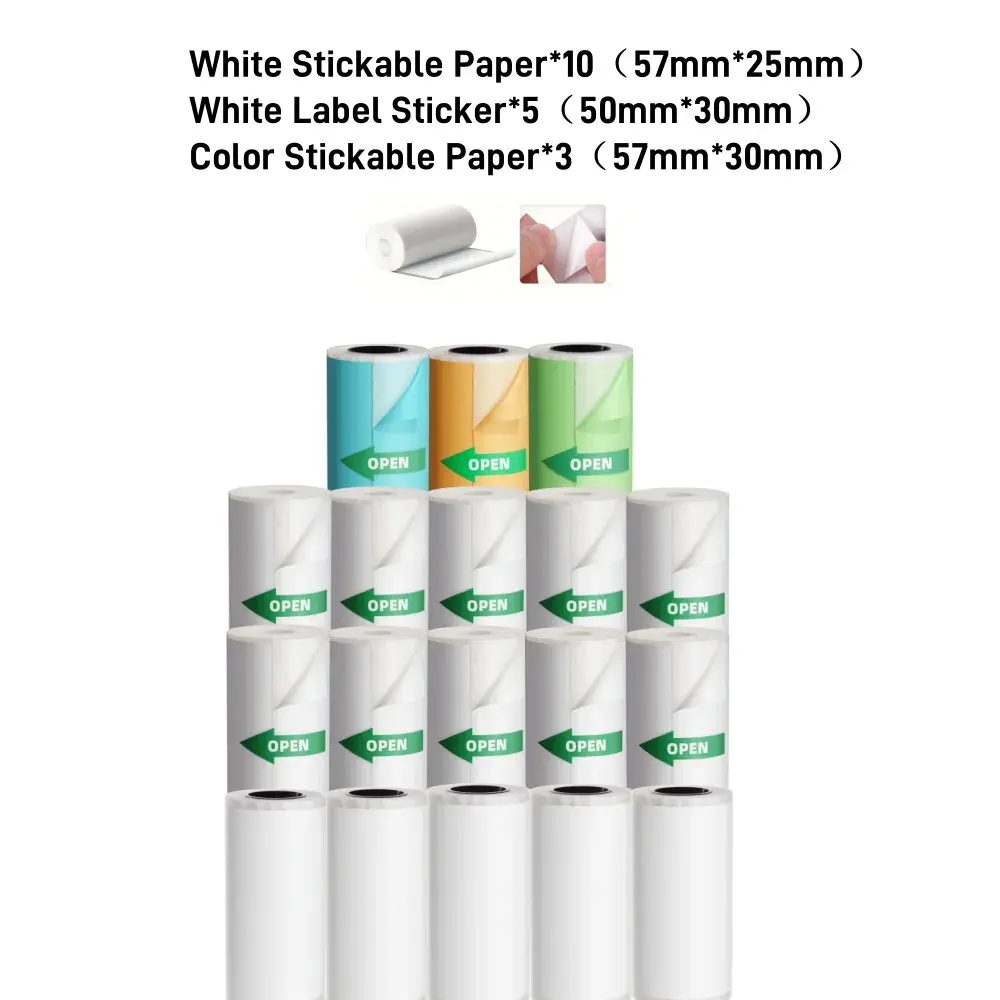 Using thermal printing technology, this printer does not require ink or toner. Its lightweight pocket-size design makes it convenient for home, school, office, journaling, organizing, and travel use. The printer supports 57mm thermal paper and can be used with compatible sticker paper, label paper, and standard thermal paper depending on your selected paper type.