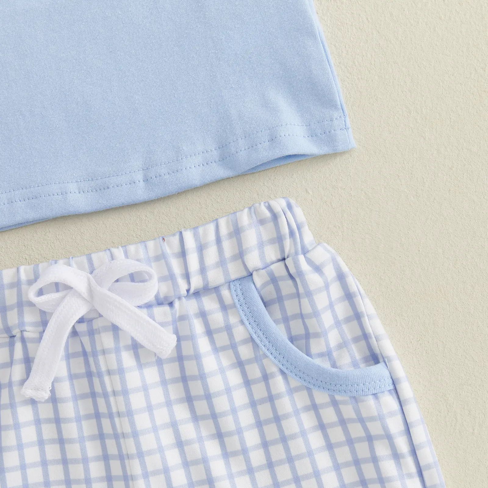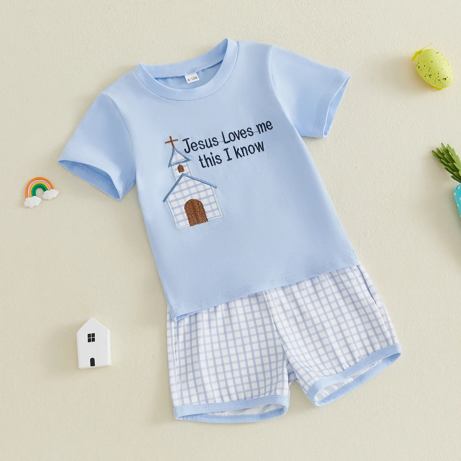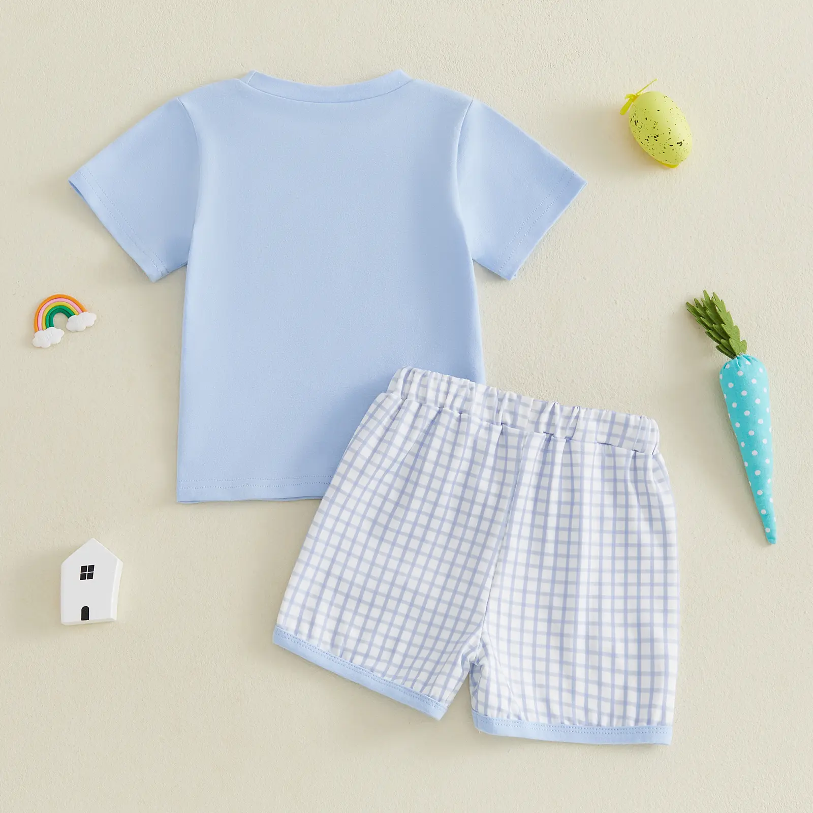 Boys Easter Shorts Sets Short Sleeve O Neck Letter House Embroidery Tops Plaid Shorts