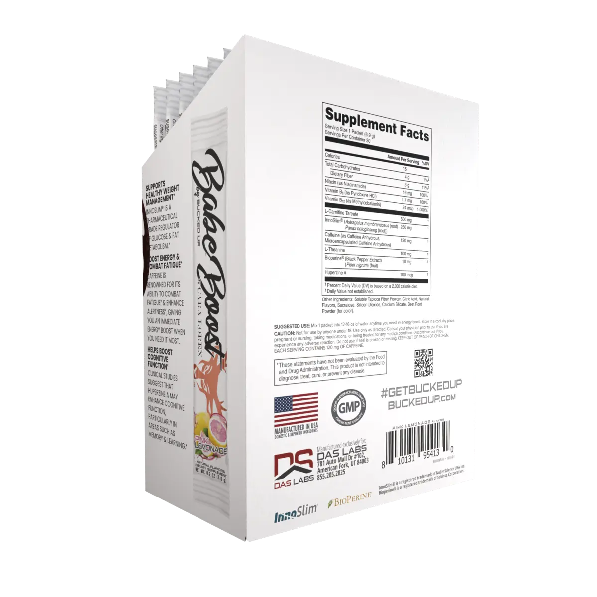 With L-Carnitine Tartrate to support metabolism and endurance, InnoSlim to help manage appetite, and 120 mg of caffeine for sharp focus, Babe Boost gives you the fuel you need to power through your day. L-Theanine promotes calm, steady energy, while Bioperine enhances nutrient absorption, ensuring your body gets the most out of every sip. Plus, with Huperzine A and B vitamins, you’ll stay sharp, energized, and ready for whatever comes next.*