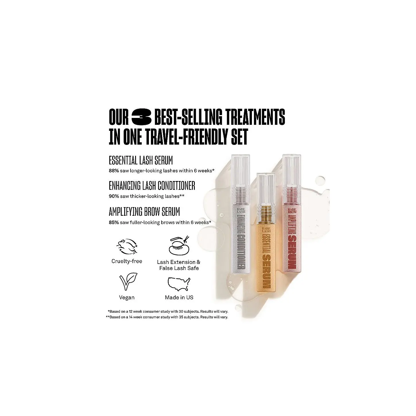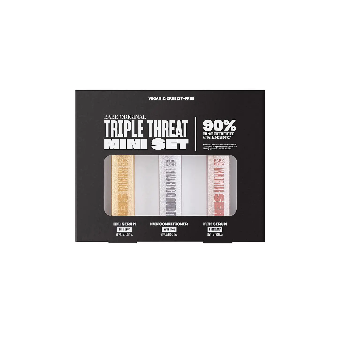 ·Includes a 6 week supply of Essential Lash Serum, Enhancing Lash Conditioner, and Amplifying Brow Serum
