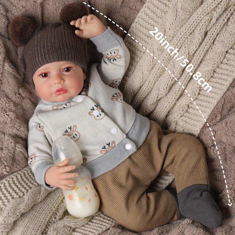 BABESIDE 20 "8 piece set of cloth body + vinyl limbs Non-gender-specific Lifelike Newborn Reborn Baby Doll with gift box and accessories suitable for Christmas New Year birthday presents and collections