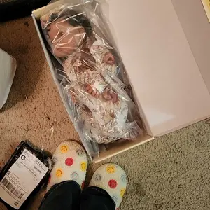 The baby doesn't look like a real baby ! And it doesn't looks like the pictures 😕 ! The hair is nappy and dry! Just got it 1-12-26