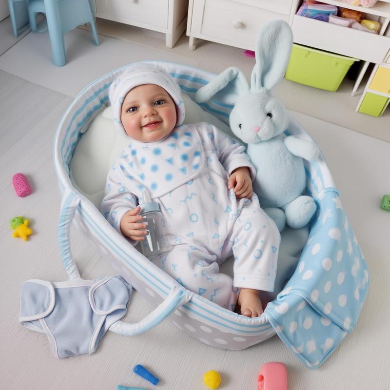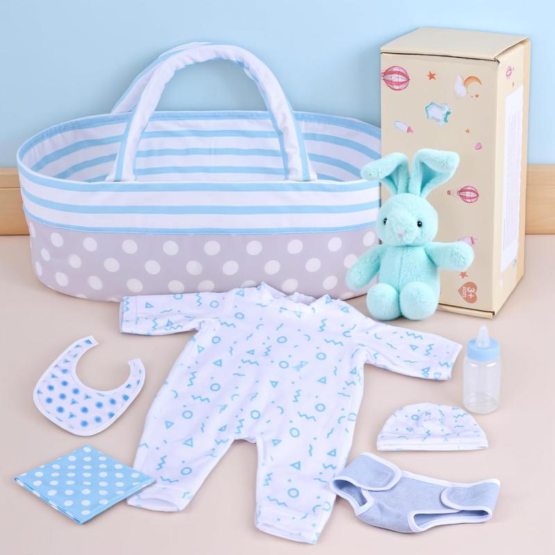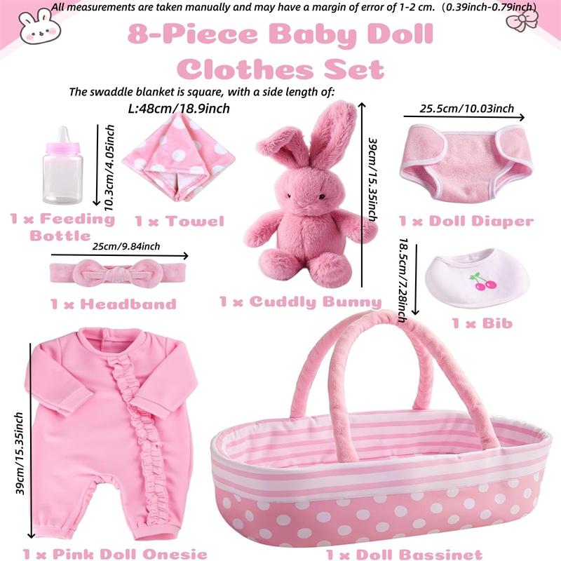 BABESIDE 8-Piece Reborn Baby Doll Clothing Set Fits 17-22 inch dolls Baby doll clothing accessories Perfect for reborn doll dress-up play Includes fabric carry basket Convenient for on-the-go outings Doll Clothes Set