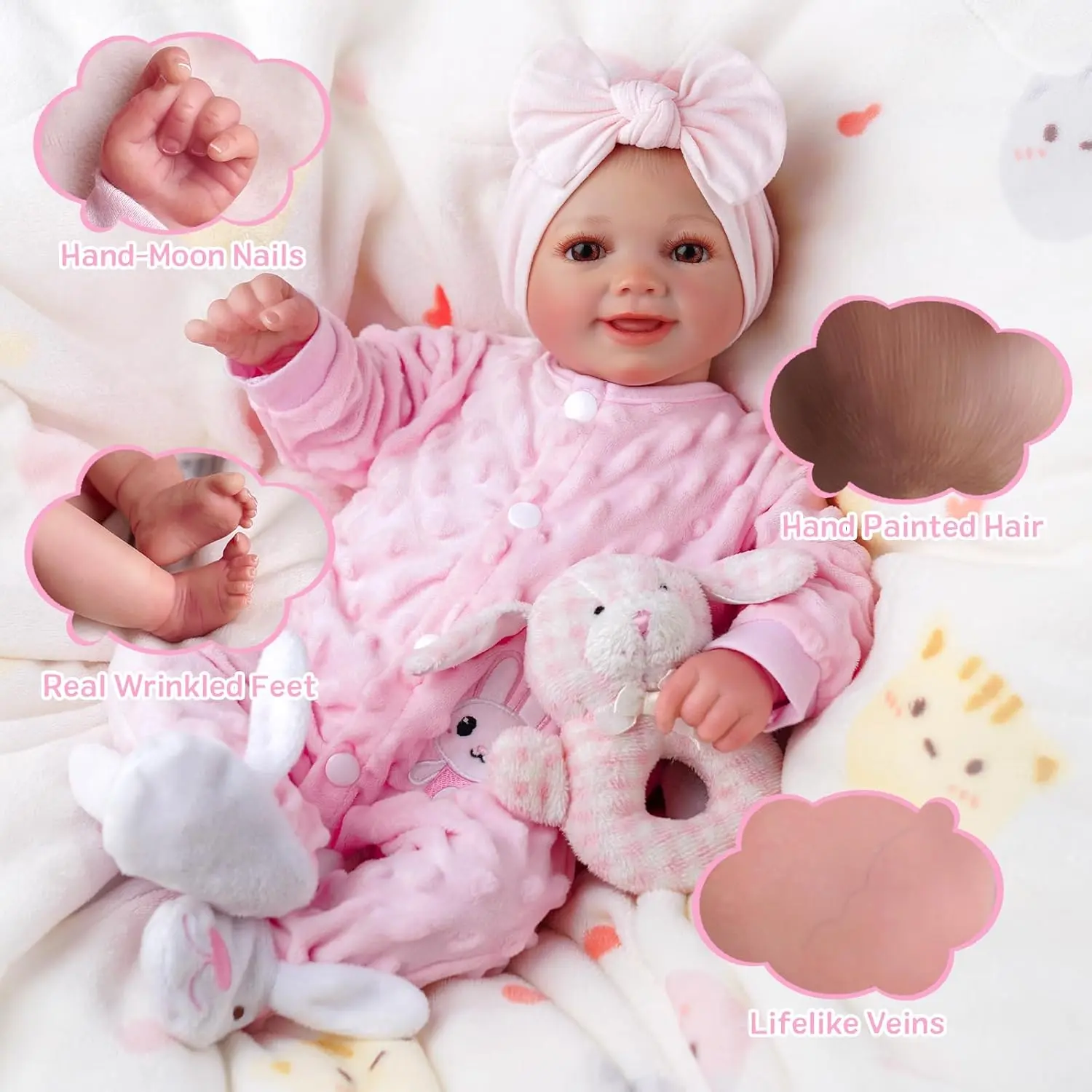 BABESIDE Lifelike Reborn Baby Dolls are ideal for kids aged 3+. These 17-inch dolls feature a fabric body and vinyl limbs, offering a realistic baby look. Perfect for Mother's Day, Valentine's Day, Children's Day, and Christmas. 🎄