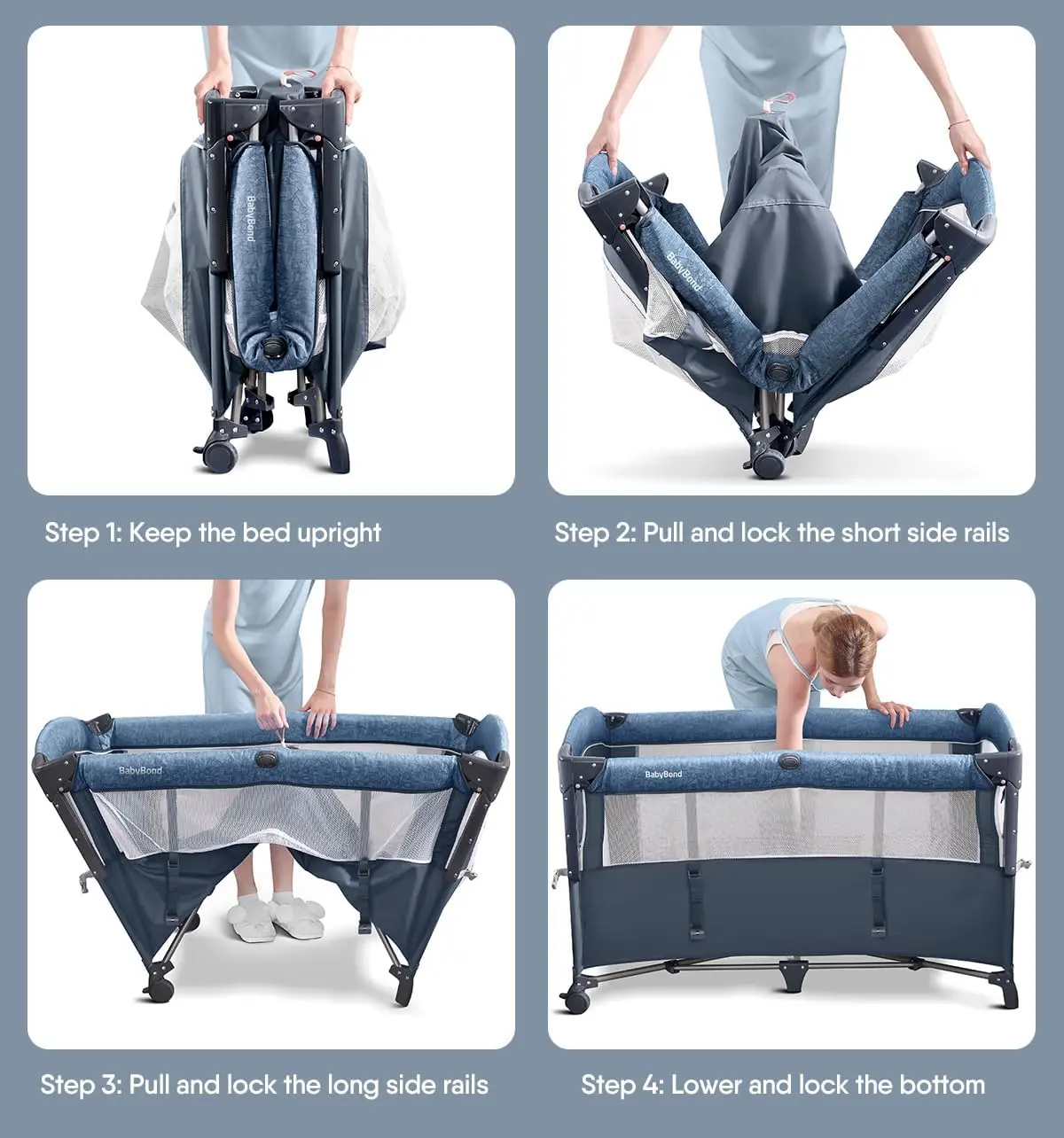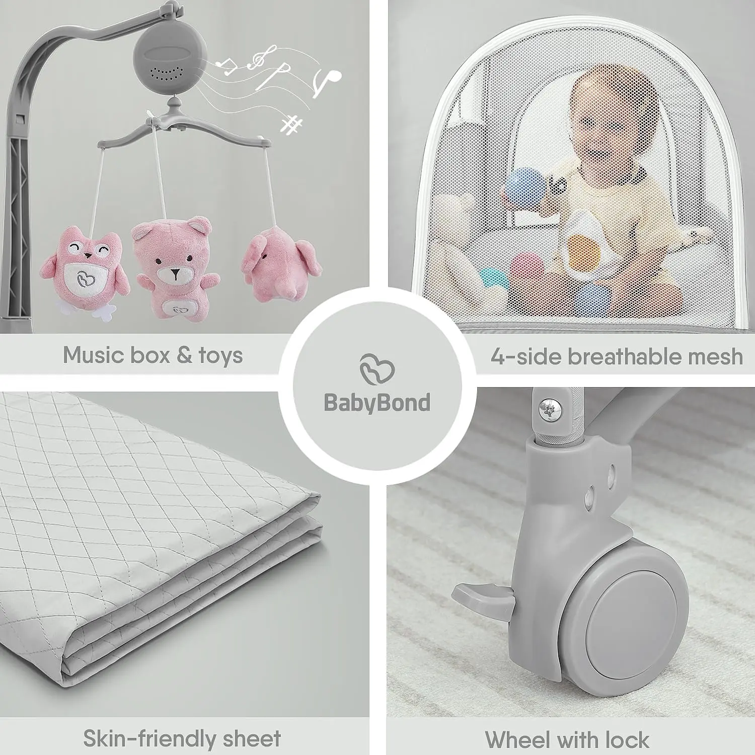 ·Reinforced Base & Mesh Sides: The upgraded base ensures stability, preventing tilting. Breathable mesh sides enhance airflow, reduce suffocation risks, and offer clear visibility, creating a safe and comfortable environment for your baby.