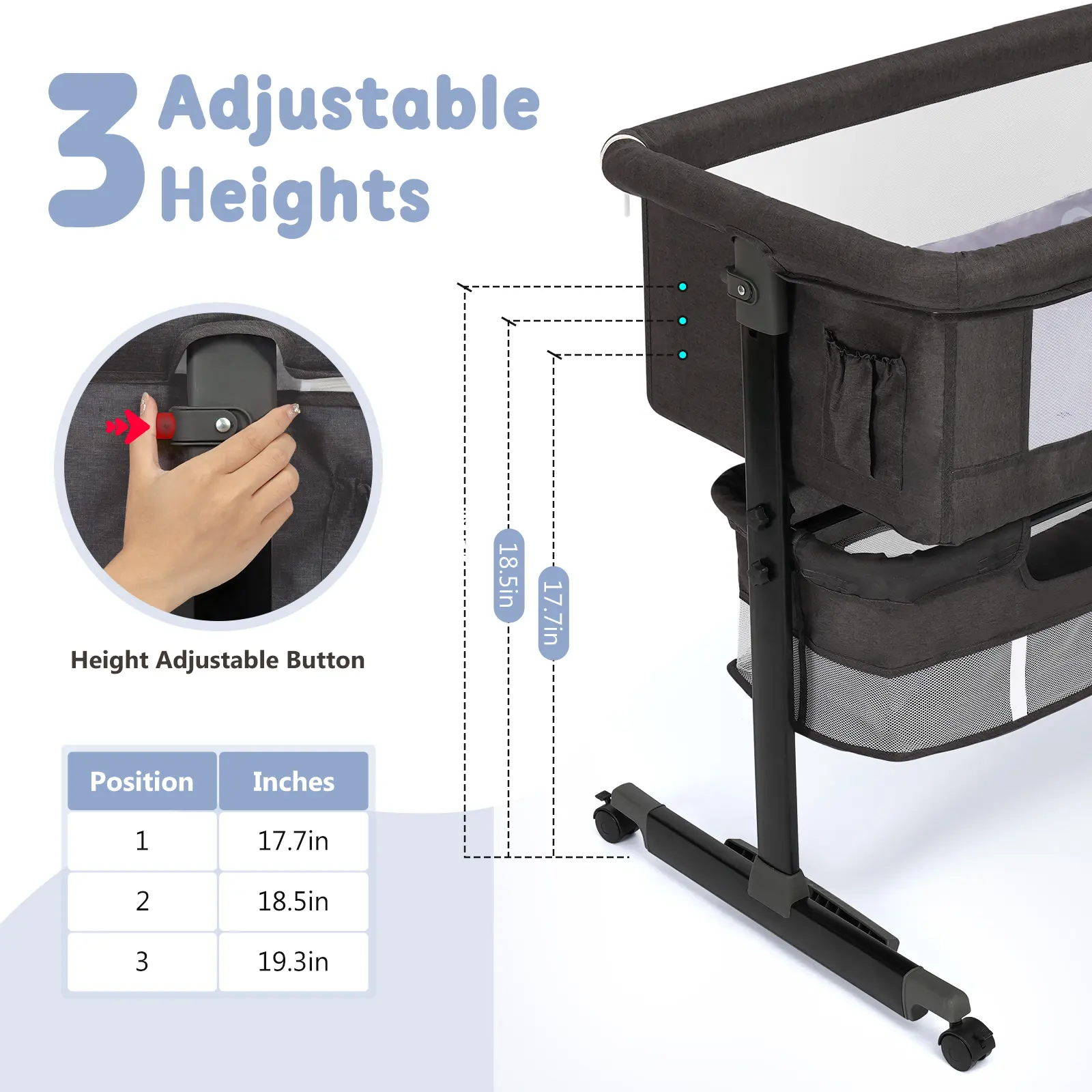 ·Versatile 3-in-1 Design: Our Baby Bassinet offers three different functions in one product. It can standalone crib, bedside sleeper or portable travel bed. This versatile design ensures that you can use it according to your specific needs and preferences.