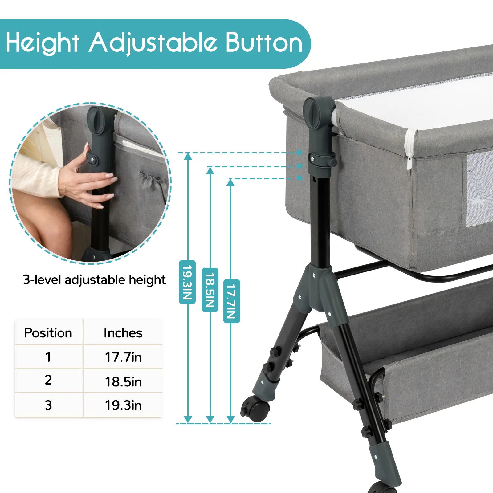 ·FLEXIBLE AND ADJUSTABLE:This bedside cradle has 6 adjustable height positions, which can be adjusted by the buttons on the sides of the cradle to accommodate different bed heights, sofas, or other usage scenarios. This way, you can easily watch over your baby and meet their needs. It can also be set to an inclined mode to prevent baby reflux.