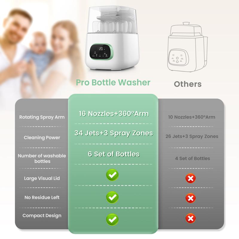 Wash 6 bottles and plenty of accessories together – pacifiers, pump parts, straw cups, baby utensils, and more. Fits bottles of various sizes and solves bottle pile-up. No more overnight bottles.