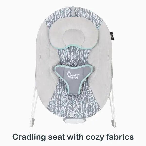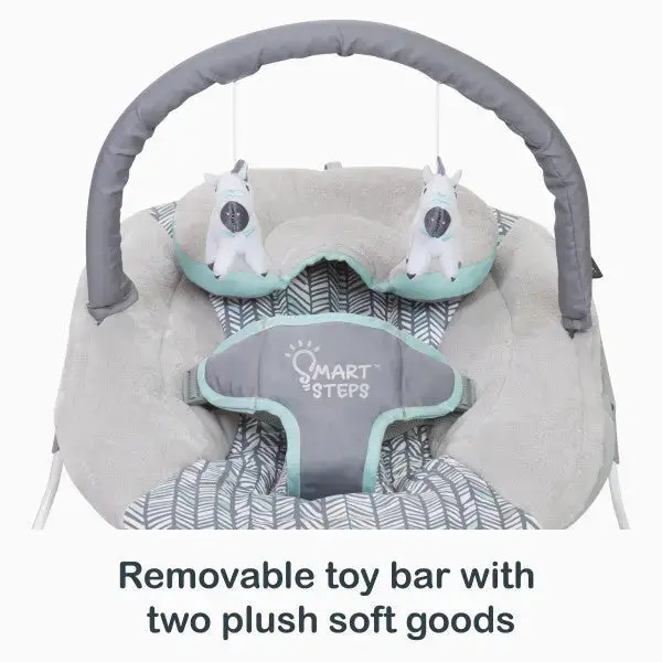 The Smart Step® Trend EZ Bouncer is a must-have for you and your tiny tot. Made with soft cozy fabrics, this Bouncer has a comfy seat and a reversible head pillow that can be adjusted and removed as your little one grows. Your child will stay comfy and secure with the adjustable 3-point safety harness, crotch cover and adjustable headrest.
