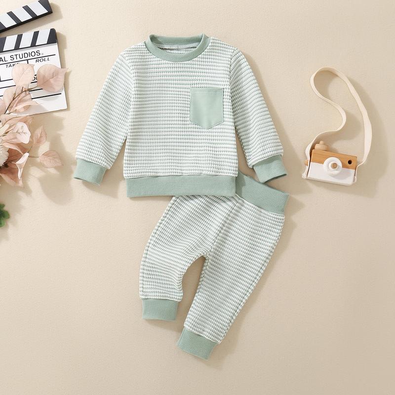 ·1 set of baby boy long sleeve outfits: waffle sweatshirt and jogger pants. 🎁