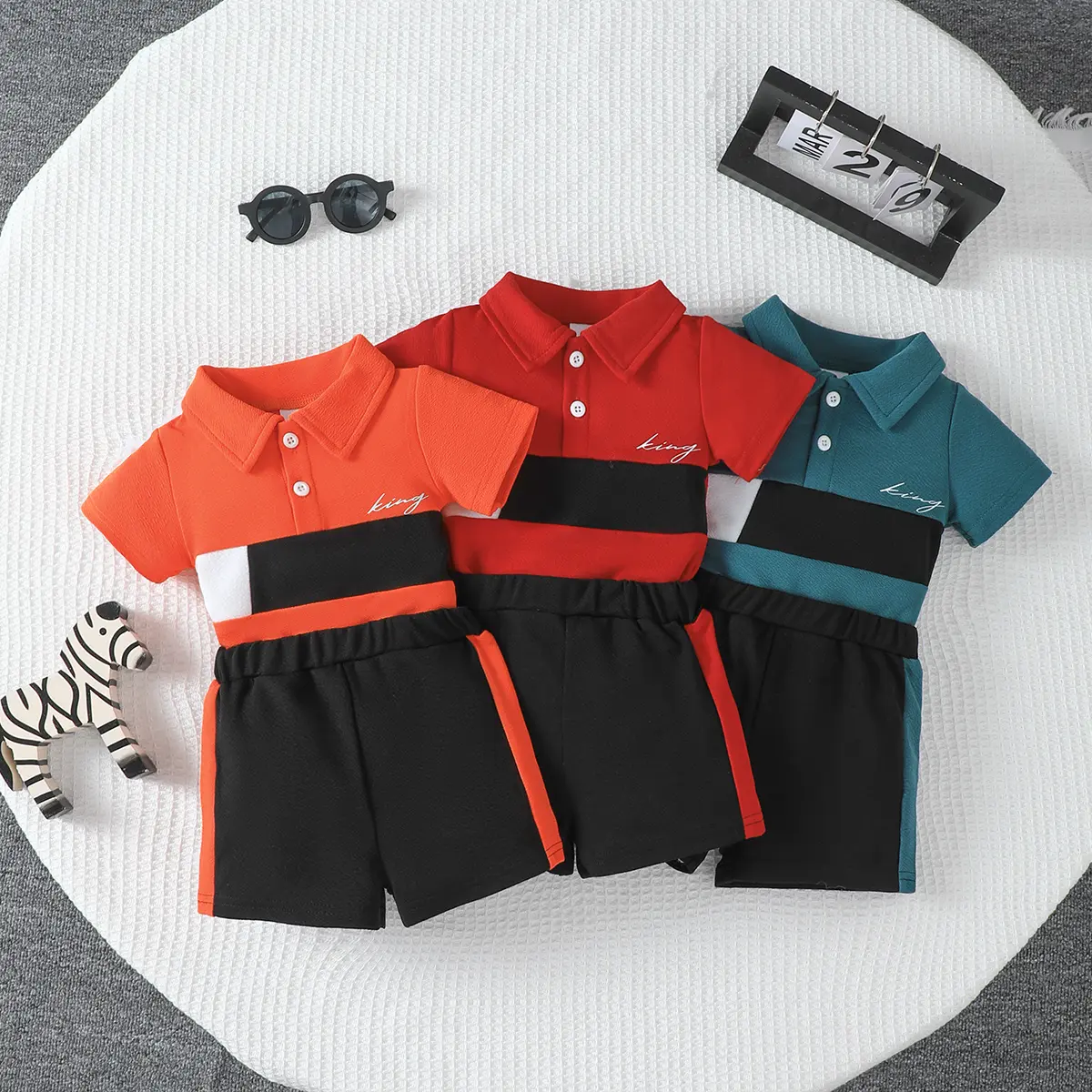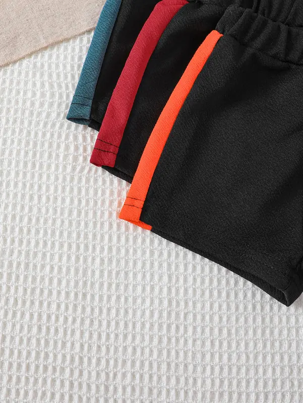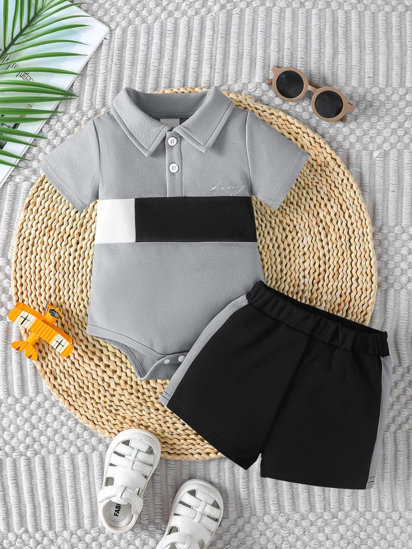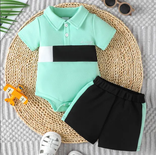 This 6-piece set is perfect for baby boys. It includes a top with a short-sleeve design and a lapel collar. The top features stylish letter and colorblock prints. The set also includes snap-bottoms for easy diaper changes. These shorts make it casual and summery. Ideal for everyday wear, outside activities, festivals, and parties.