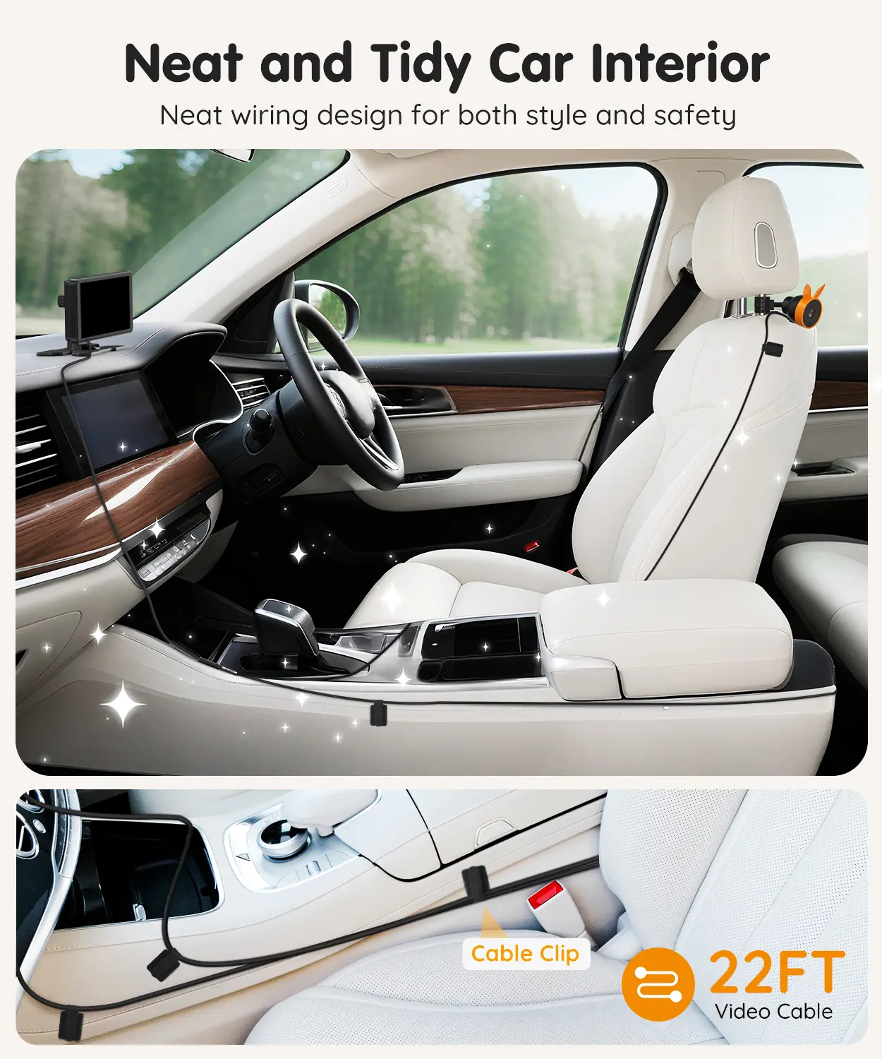 Includes cable clips for a clean setup and a 22FT long cable, compatible with SUVs, trucks, and 3-row vehicles.