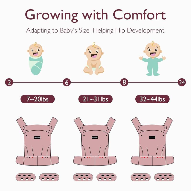 Our carrier features three adjustable sizing positions, catering to your child's growth at every stage for 7-44lbs.