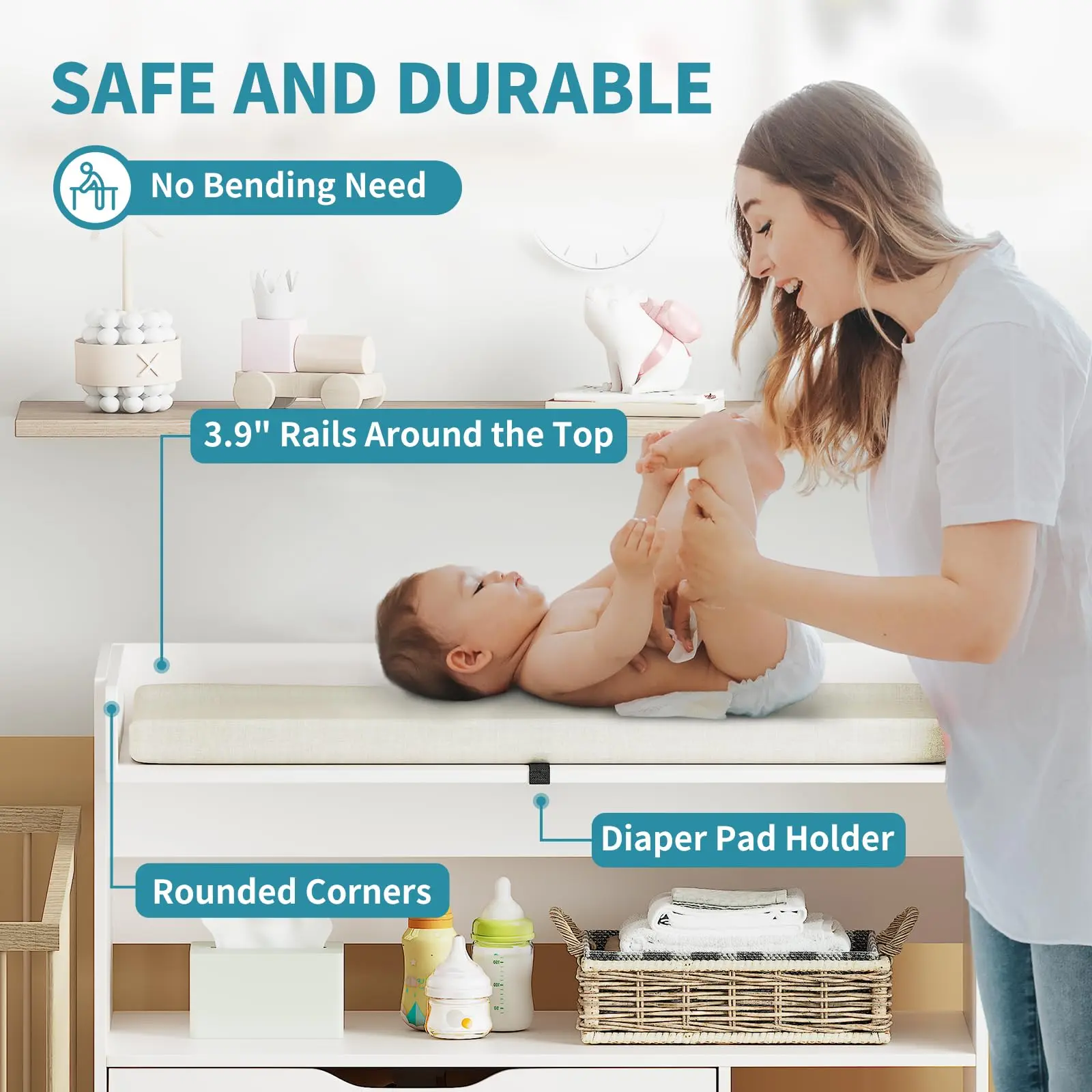 ·Baby Dresser with Changing Table Top: Our diaper changing tables are safe materials, and it is very suitable for family storage. Fresh color matching is the best baby furniture in the decorative room.