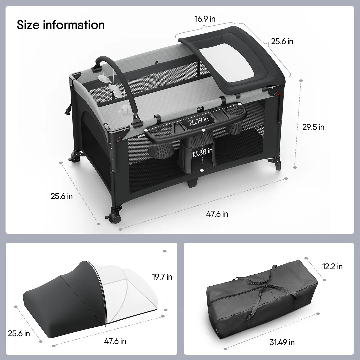 ·[Upgrade 5-in-1 Design] BabyBond nursery center grows with your baby, converting to a bassinet, bedside crib, playpen, travel crib, and diaper changer. The removable bassinet is perfect for naps, while the spacious playard features a zipper entrance for easy in-and-out access.