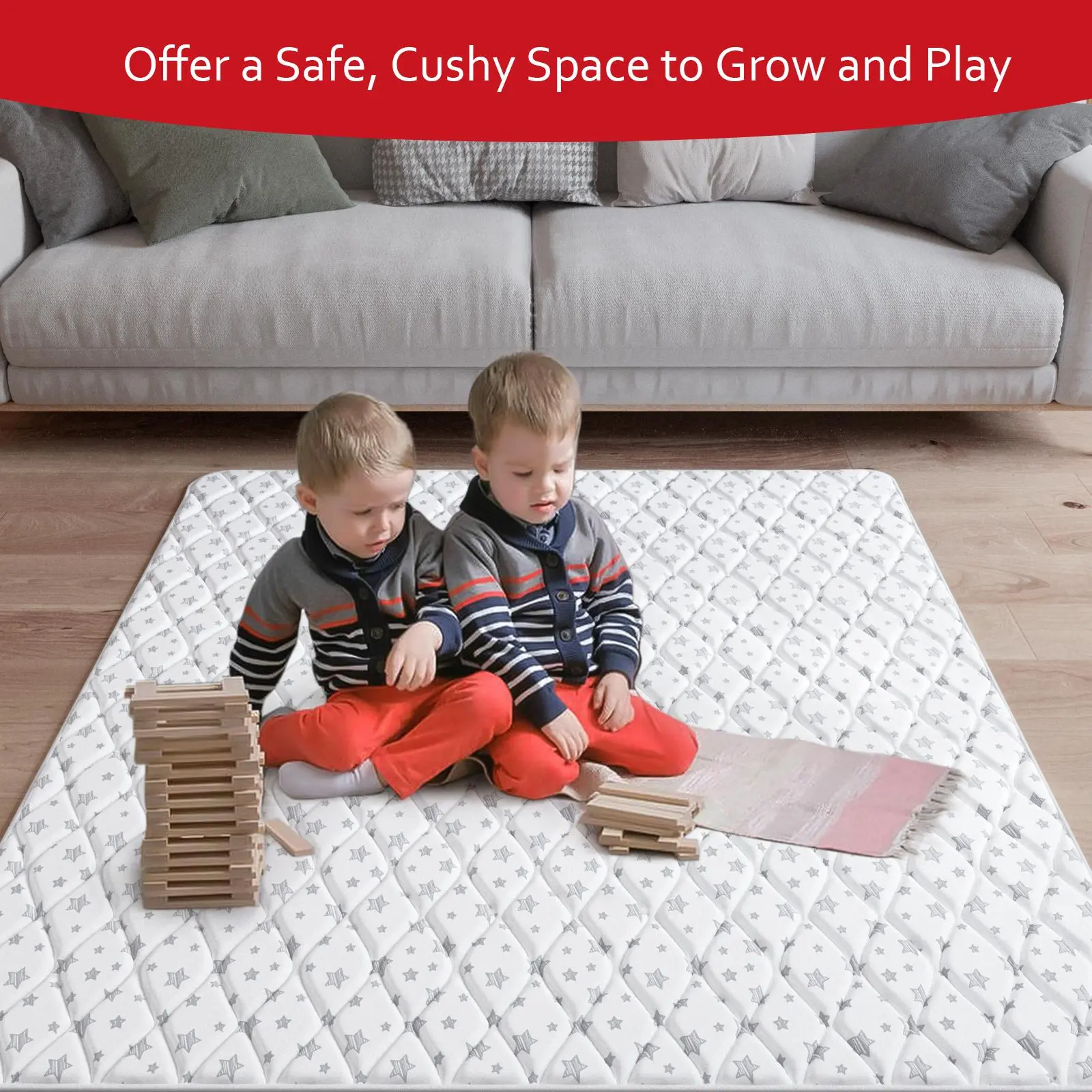 ·Extra-Thick Foam Cushioning: Made from premium high-density sponge with a soft microfiber surface, this baby play mat delivers superior comfort and support on hard floors. Safe, non-toxic, and perfect for crawling, playtime, and tummy time!