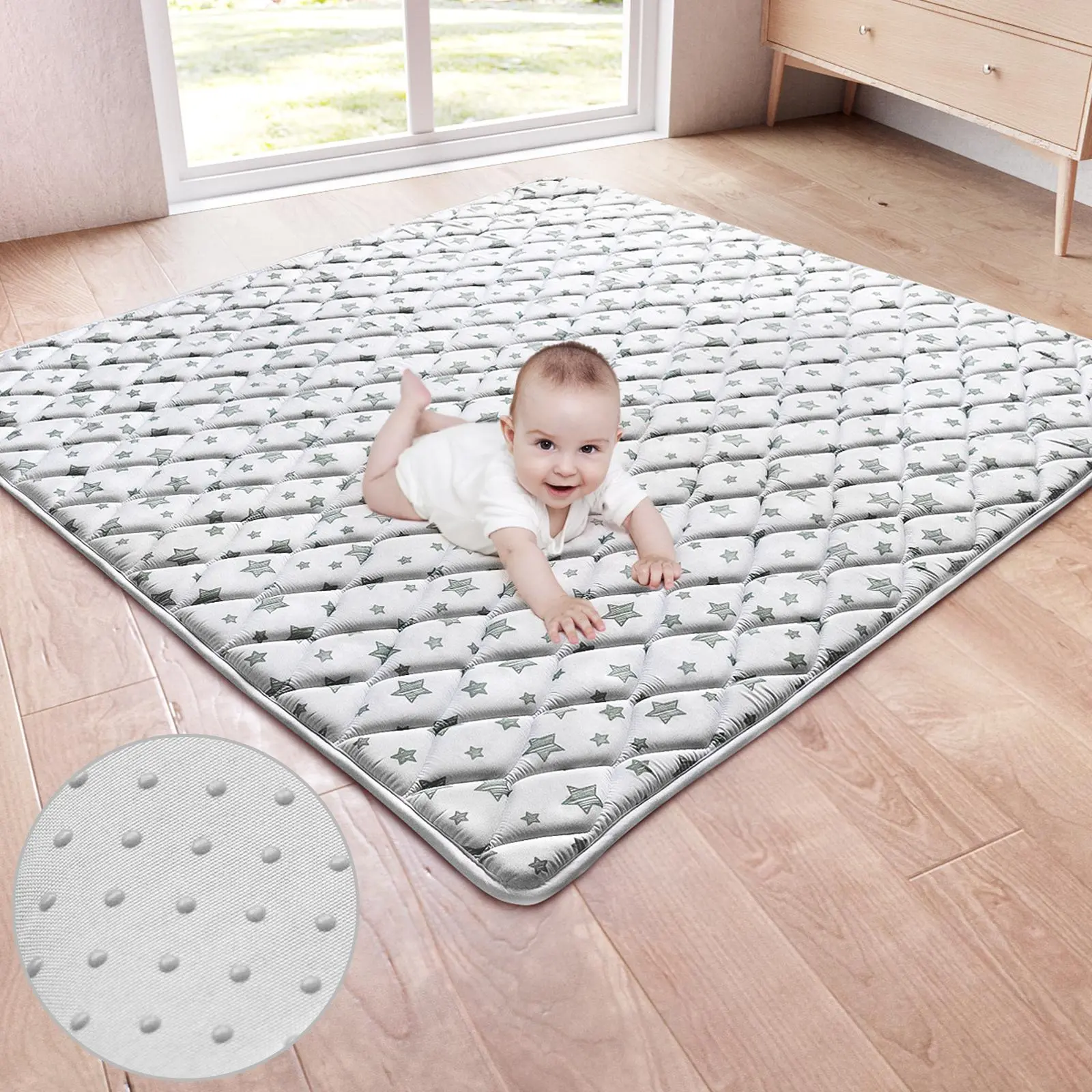 ·Adorable Star Print & Ultra-Soft Feel: Designed with charming star patterns and a delightfully cozy surface, this playmat will quickly become your little one’s favorite spot for playtime, naps, and giggles!