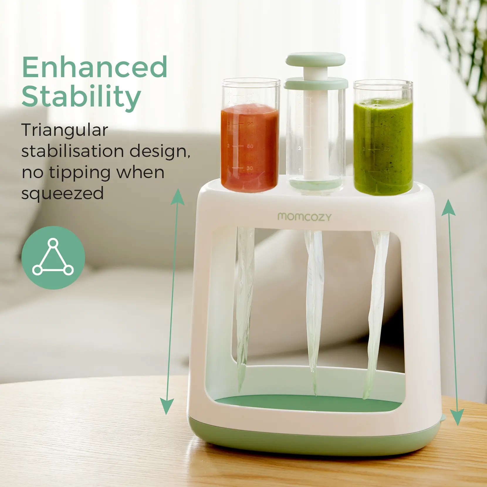 ·More Stable: Momcozy squeeze station use a triangular-like design to greatly enhance stability.No need to worry about tipping during use, protecting your baby's nutritious meal.