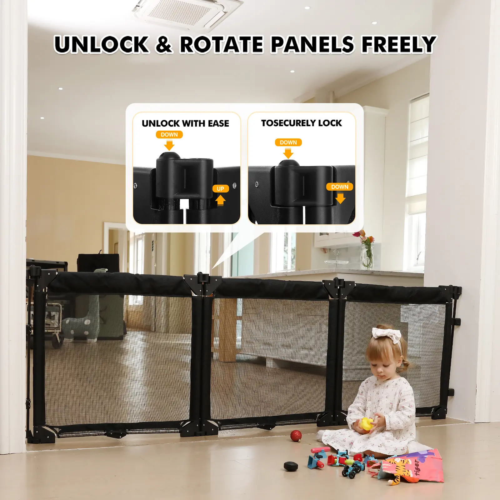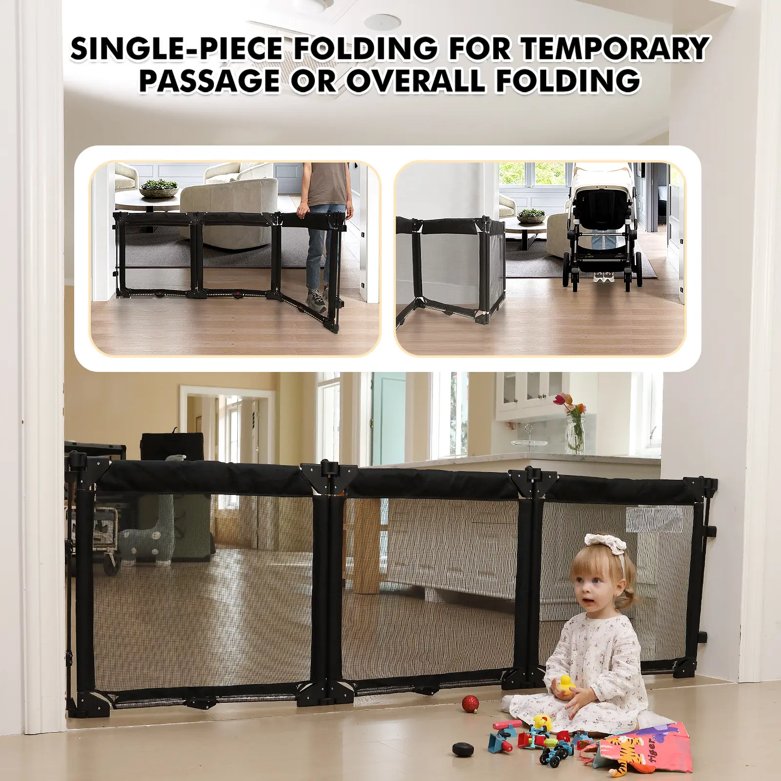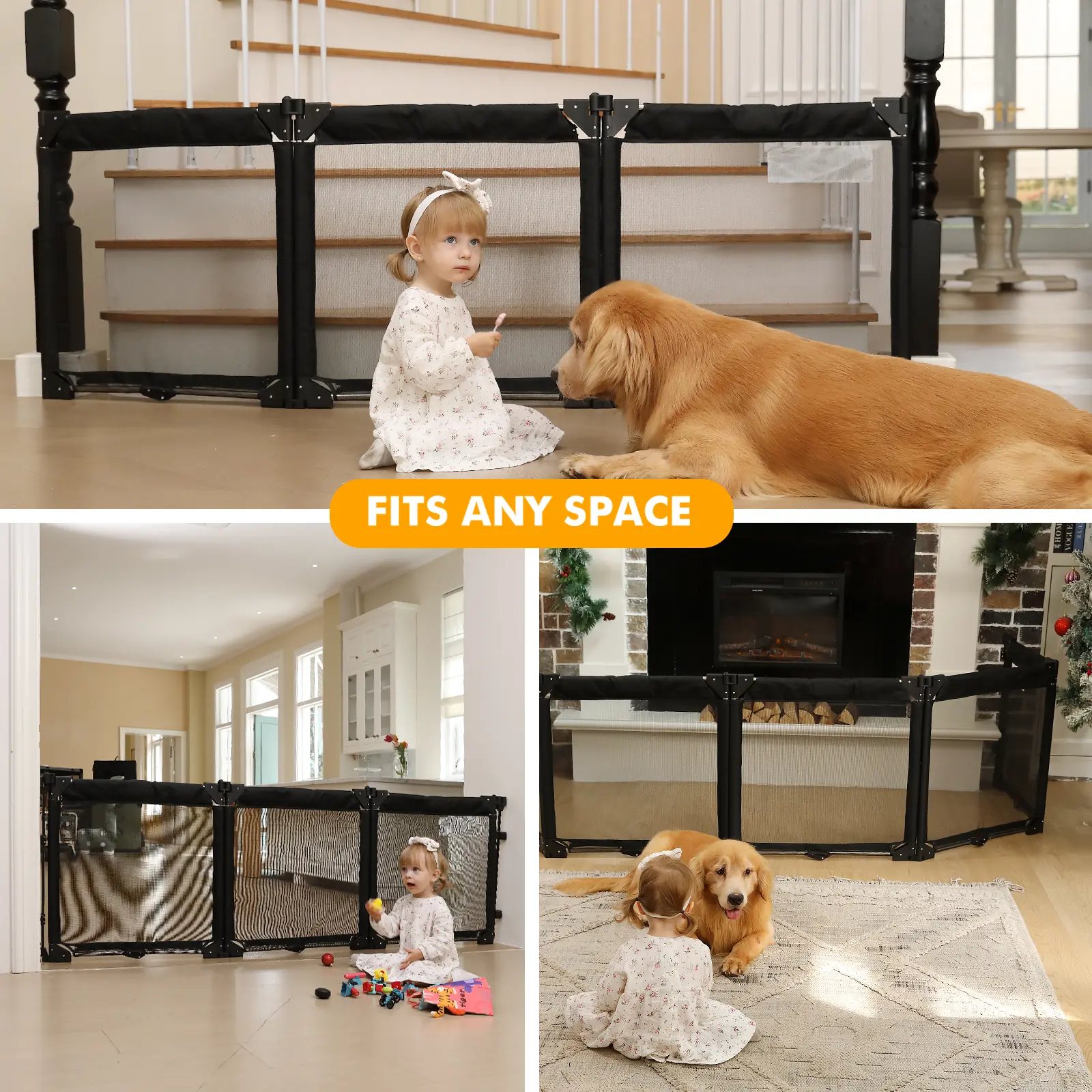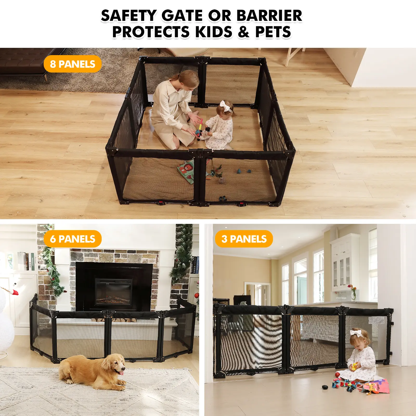 5. Extra Wide Baby Gate Playpen with Heat-Resistant Mesh,3 Panel Foldable Baby Fence,Indoor/Outdoor Safety Barrier,Dog Playpen & Fireplace Gate