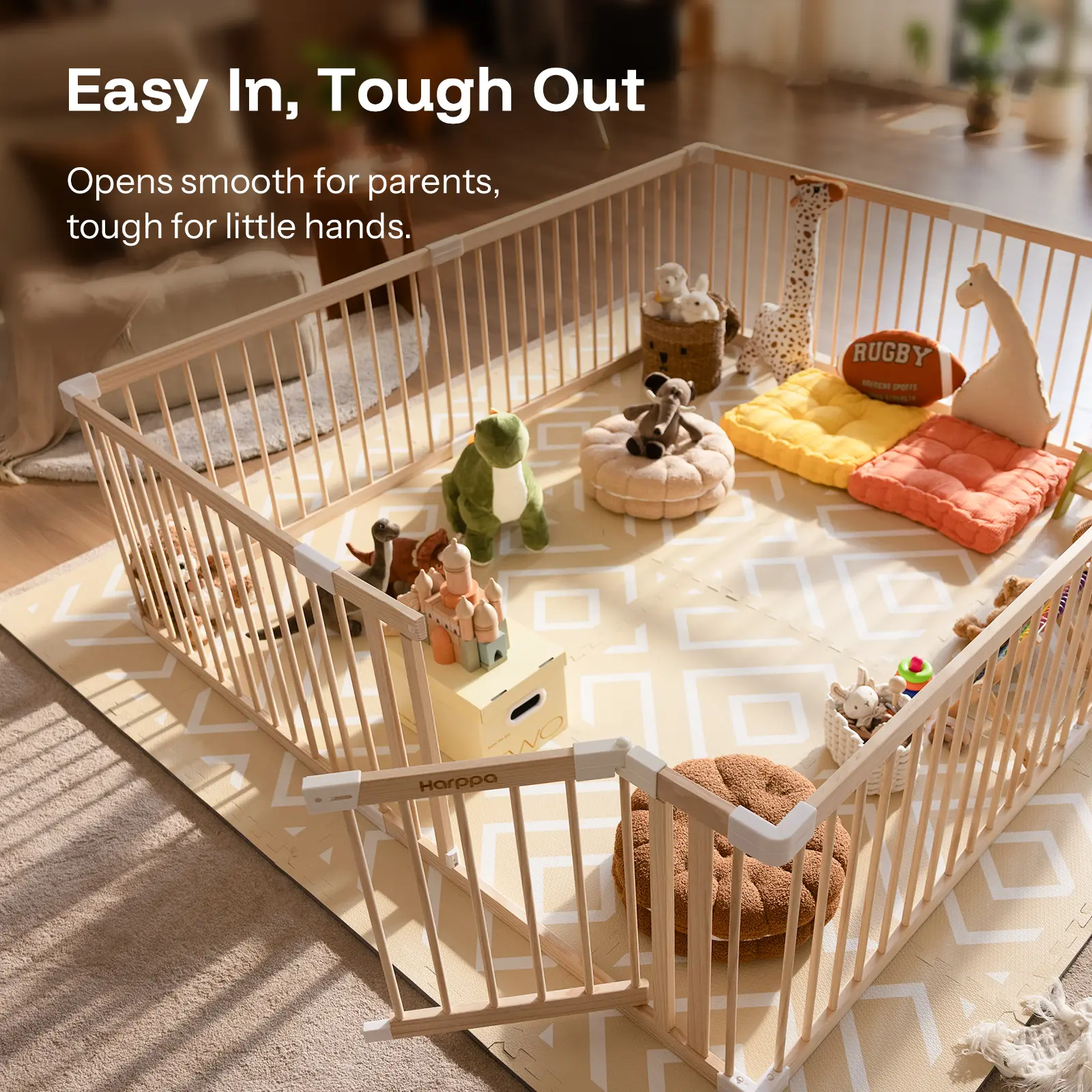 Warning: The growth of the baby requires our careful care. It must be under the supervision of parents while using. Before use, please place anchors (heavy objects) at corners of playpen and zip ties with furniture anchor on the wall. Stop using when a child can climb over or open the gate.