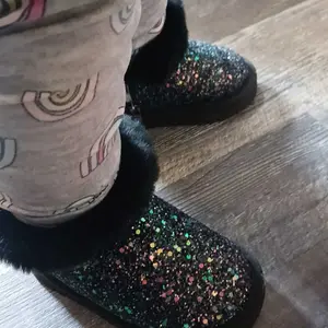 These boots are so soft and the glitter doesnât rub off. They look exactly like the picture. Extremely happy with my purchase.