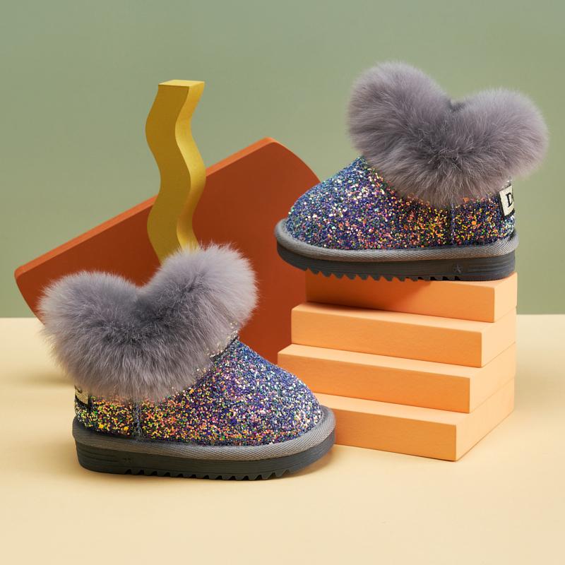 âš Glittery Color Design: These low-top winter shoes feature a charming glittery 3 color, perfect for little ones. The heart pom-poms add a playful touch. Ideal for outdoor play, they keep your baby girl stylish and cozy.