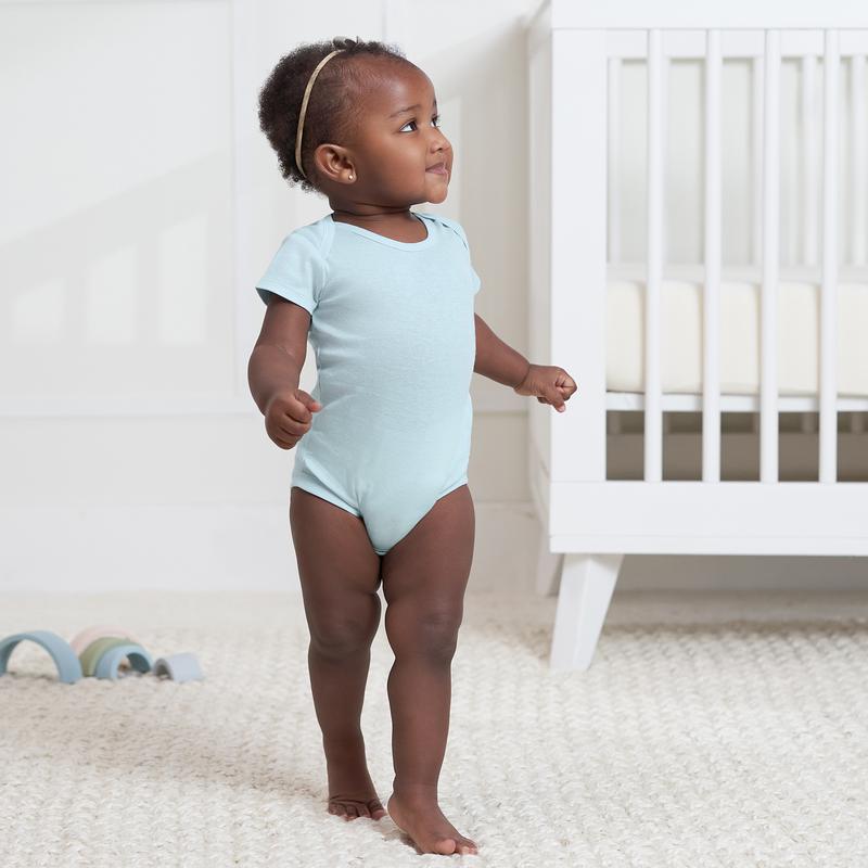 These Onesies® bodysuits are your essential baby girl everyday outfit. Easy to wear as a one-piece outfit in warmer months and simple to layer on cooler days. Crafted from 100% cotton to be gentle on sensitive skin, these outfits are easy to slip on either as a pullup or pullover. High-positioned snaps make it easy to change a diaper without removing the entire outfit. If an outfit change is needed, the expandable lap shoulder neckline makes it easy to pull the dirty outfit down over the legs. We use STANDARD 100 by OEKO-TEX® certification on products tested in an independent laboratory against a list of more than 400 harmful substances, including PFAS. This pack includes five Onesies® bodysuits.
