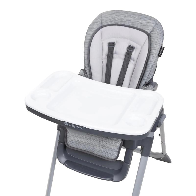 This Baby Trend® Sit Right 2.0 High Chair provides the optimal combination of style, safety, ease-of-use and convenience for your little one. Your baby will be safe and comfortable during mealtime with this sturdy and feature-packed high chair. The Sit-Right 2.0 height adjustable high chair is easy to clean and the serving tray is dishwasher-safe, plus it offers three positions and one-hand operation. The 3-point safety harness, 3-position seat recline and 6 different height adjustments provide maximum comfort and security for your baby. The high chair is easy to assemble and the compact free-standing fold makes it easy to store.