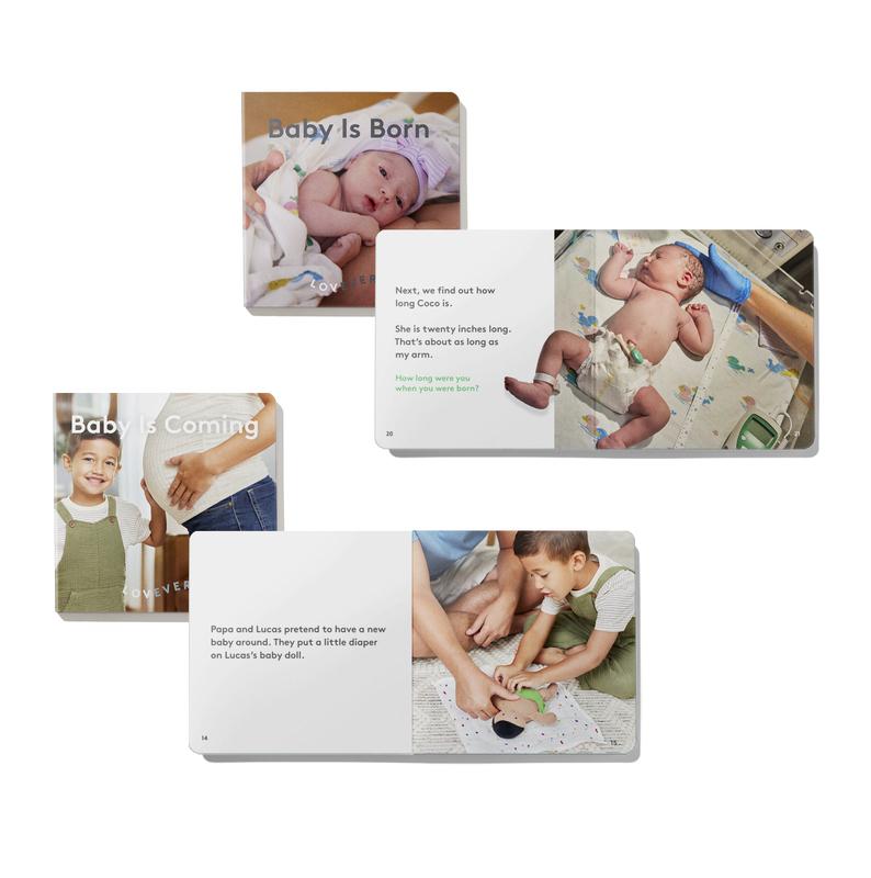 Check out the rest of the The New Sibling Book Collection: Baby Is Coming, Baby Is Born, Baby Is Here, and Baby Is Crawling These books help you set the stage for a healthy sibling relationship, with examples of how to emotionally prepare your older child to meet their new sibling and adjust to sharing your attention.