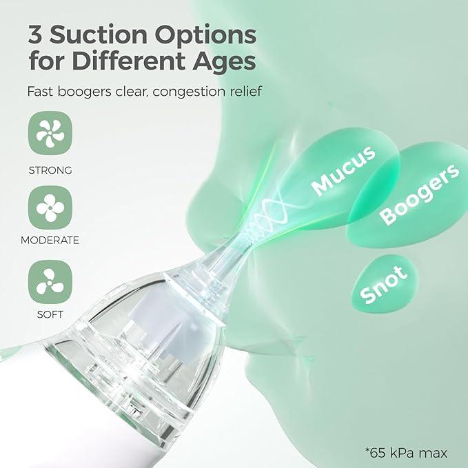 The Momcozy Baby Nasal Aspirator offers 3 suction levels, ensuring safe and gentle nasal cleaning for babies, newborns, and toddlers. This electric aspirator is designed with your baby's comfort in mind, featuring a soothing light and music. It's a portable solution for keeping your baby's nose clear.