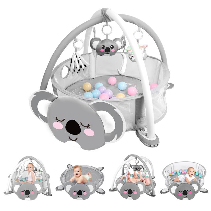dearlomum 4-in-1 Baby Play Mat Koala Gym Tummy Time Mat for Floor Activity with 30 Balls & 5 Sensory Toys for Newborn Toddler Boy & Girl Gifts