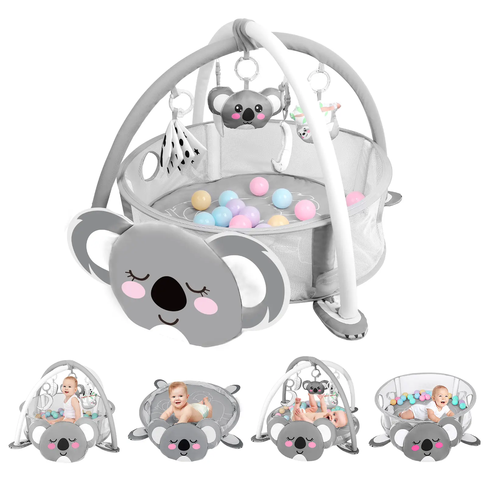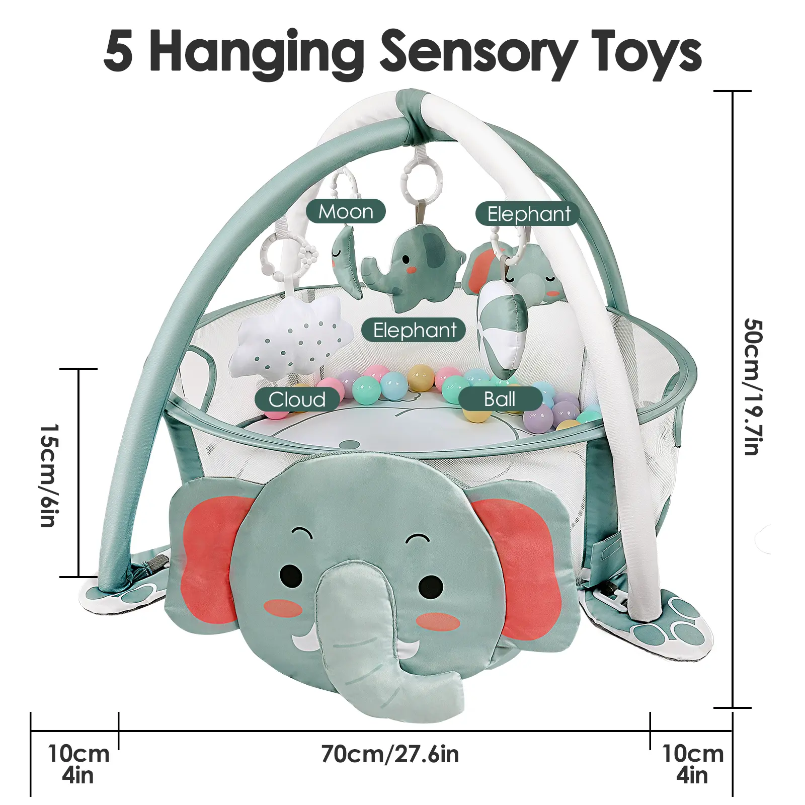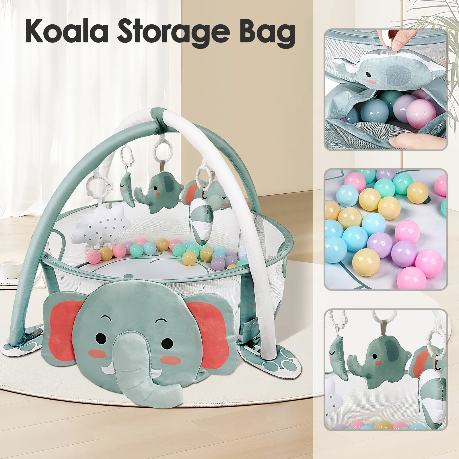 The Dearlomum 4-in-1 Baby Play Mat is perfect for newborns and toddlers. It features an elephant gym and tummy time mat. Ideal for floor activities, it includes 30 balls and 5 sensory toys. Suitable for both boys and girls, it's a great gift. 🎁