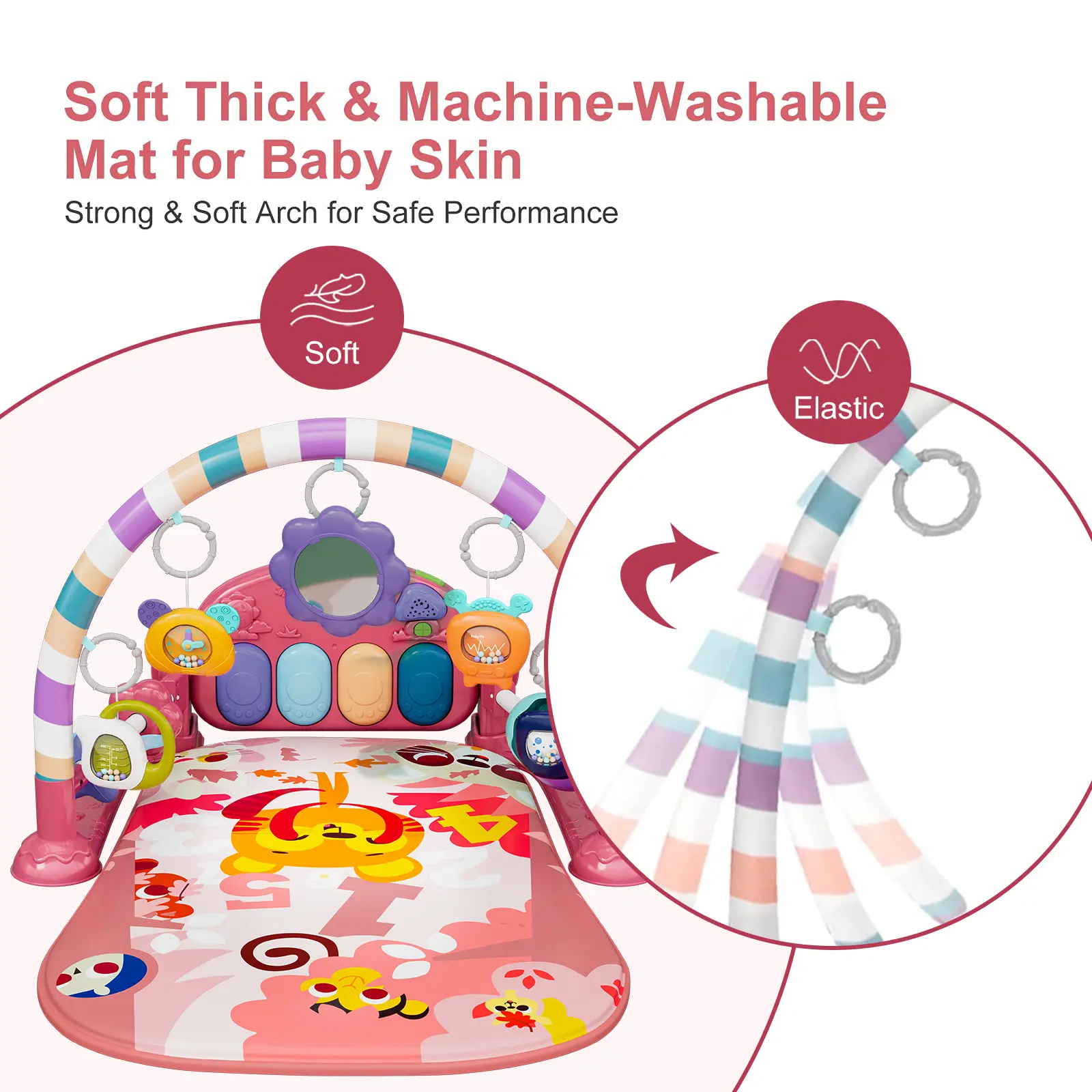 The mat is way too thin. I had to put this is a bassinet. It keeps my granddaughter's attention I'm just disappointed that the mat is thin.
