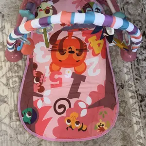 It is cute and entertains my baby. I was sad I paid the amount I did. The plastic is cheaply made, still had glue string coming from it. The box was opened before and looked like it was taped back together when it was delivered. Lastly the string that holds the mat to the plastic already ripped.