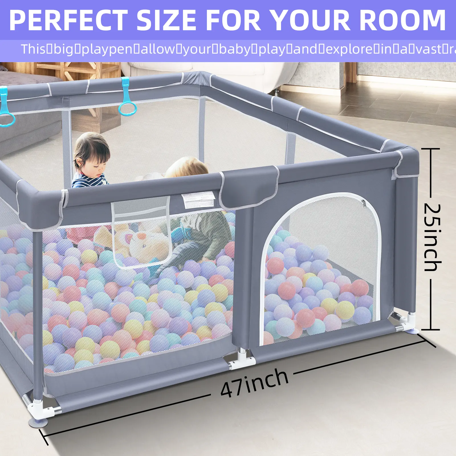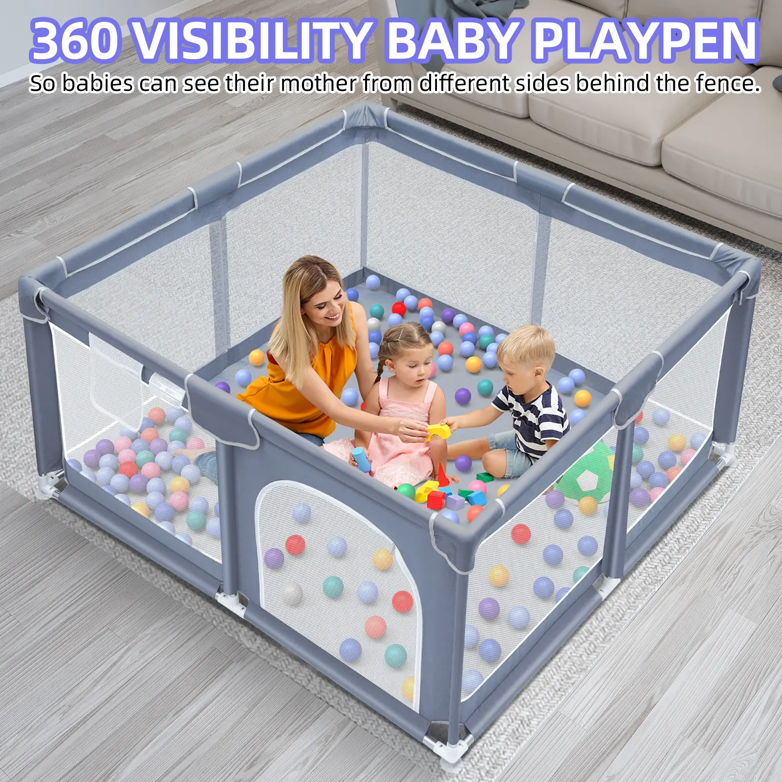 Love the play pen it is kind of difficult to put together if you have no help and don’t read the directions like I did but other than that it’s huge it fits my 4 big kids in it and they are tall !!