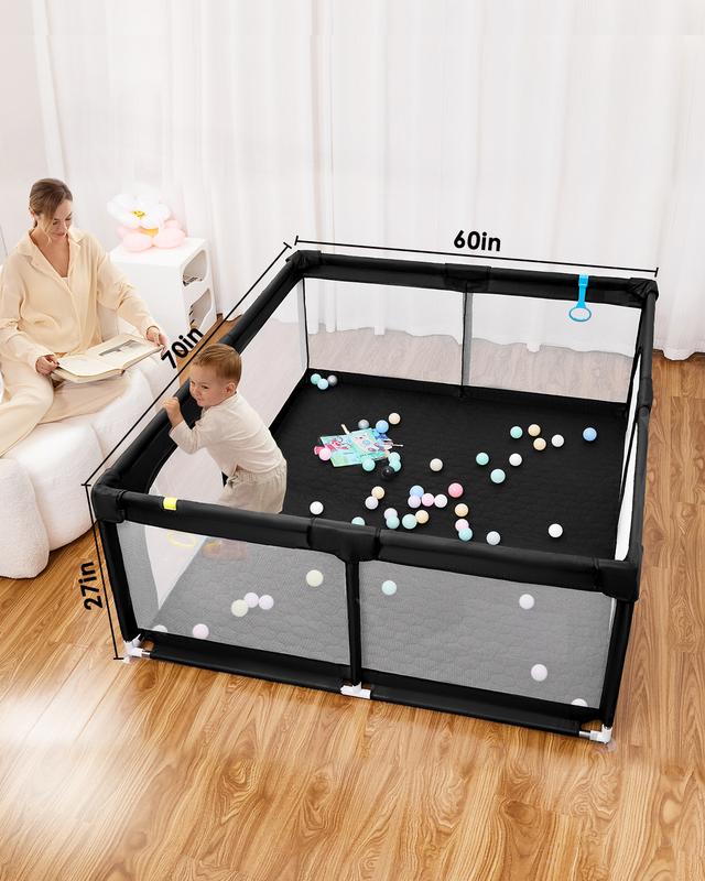 black, 71"x59", Baby Playpen Non-removable mat