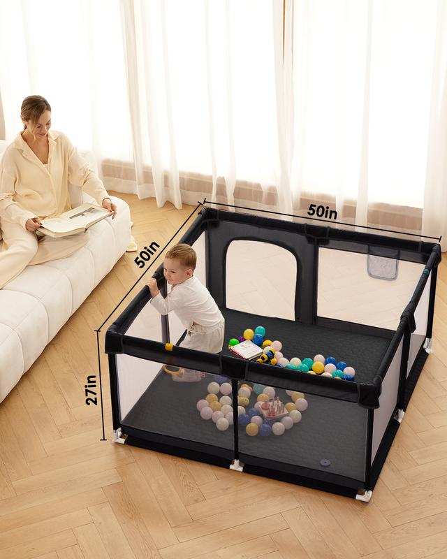 black, 50" x 50", Baby Playpen with Mat