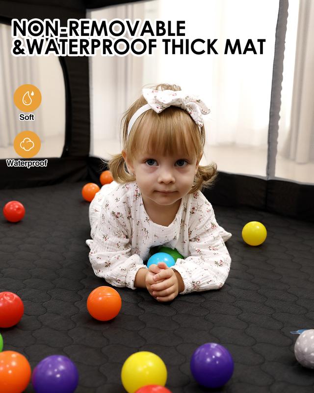 black, 71"x59", Baby Playpen with Mat