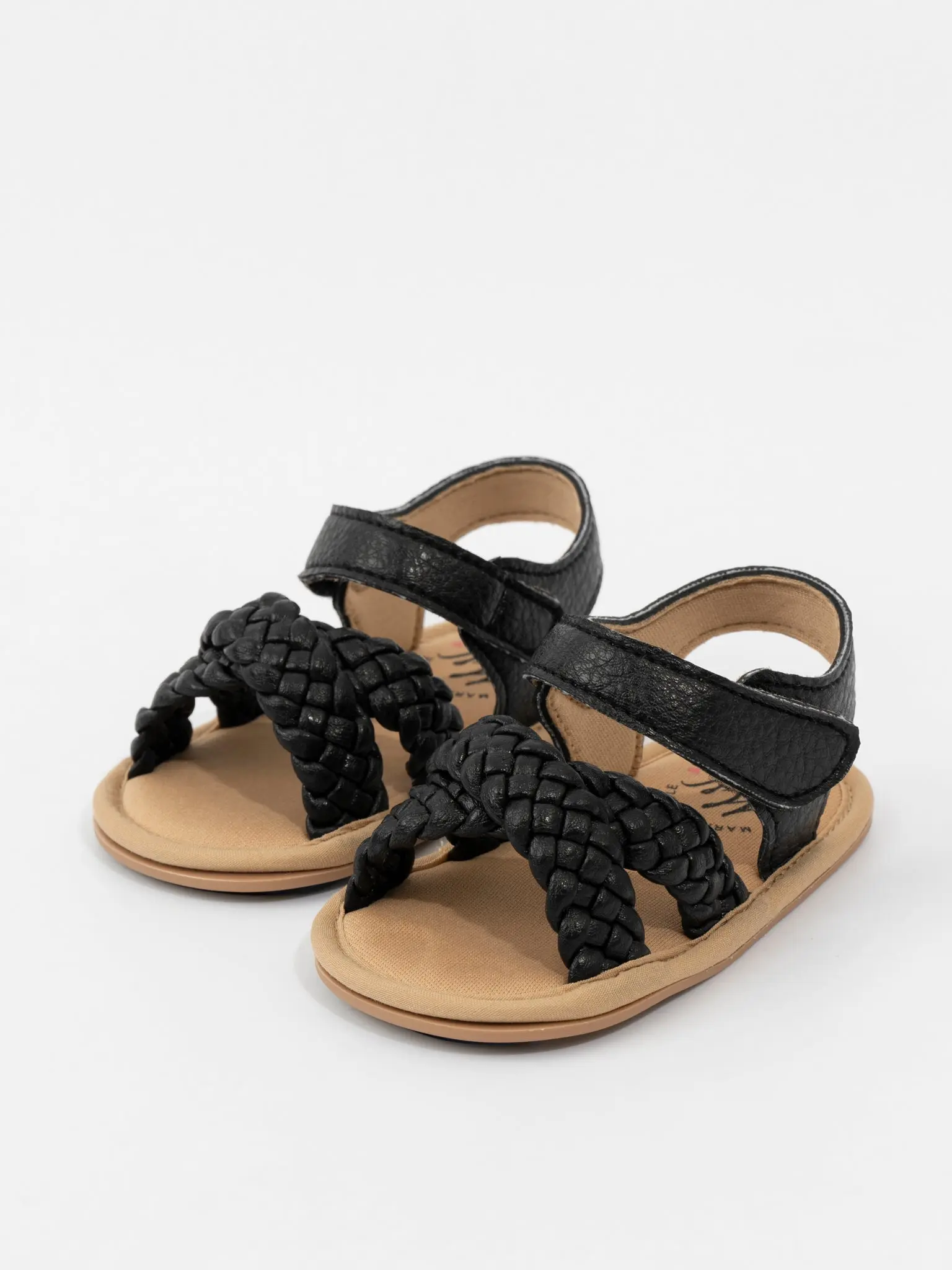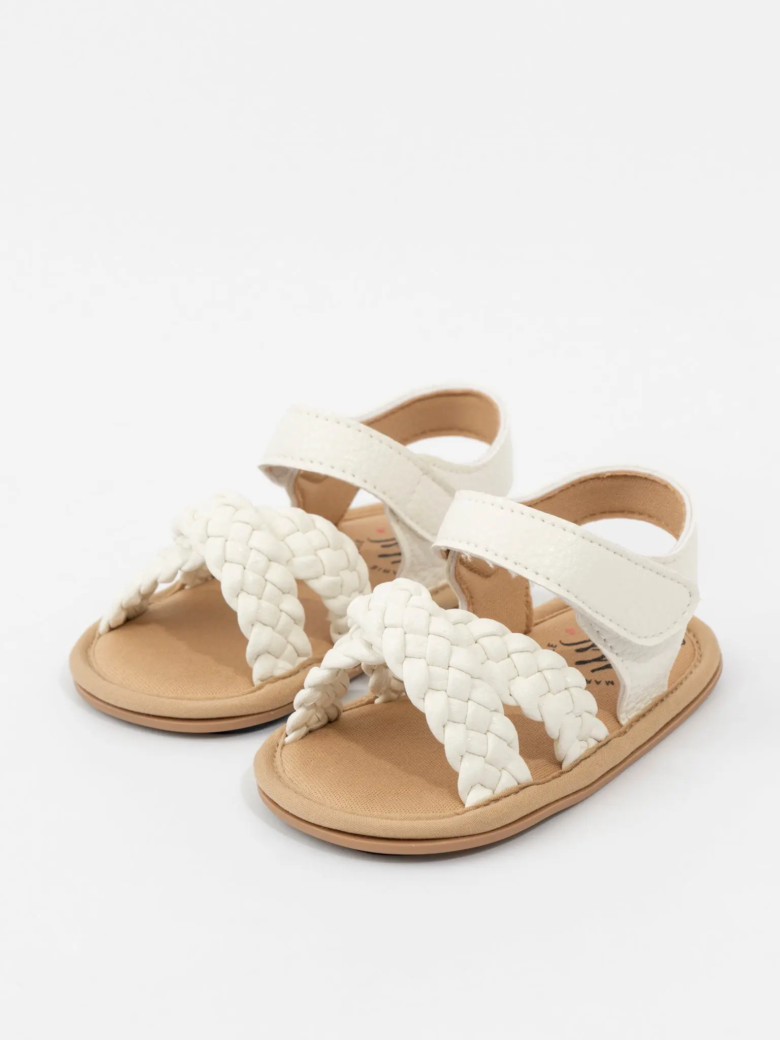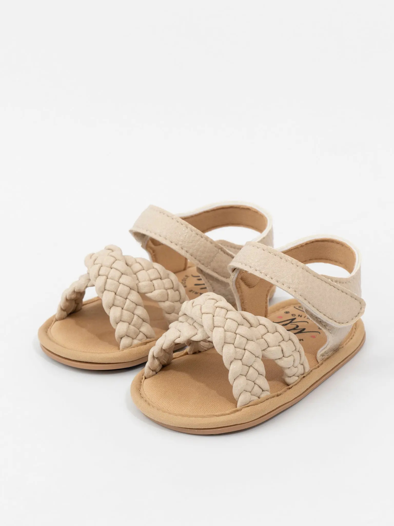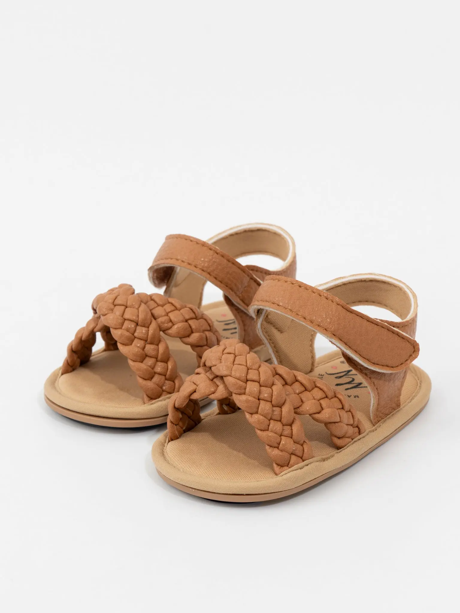 These adorable Braided Cross-Front Baby Sandals will have your little one strutting in style! The unique braided front design adds an extra touch of charm, while the ankle strap with velcro closure ensures a secure fit. Designed by Marie Nicole Clothing, these sandals are perfect for every fashion-forward baby girl!
