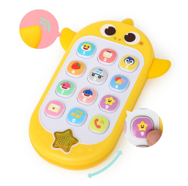 ·Ring, ring! Introducing the most adorable Baby Shark smart phone and book set designed for kids to enjoy imaginative phone play. Explore 123's, fruits, shapes, and more in Number Mode & Song Mode with Baby Shark.