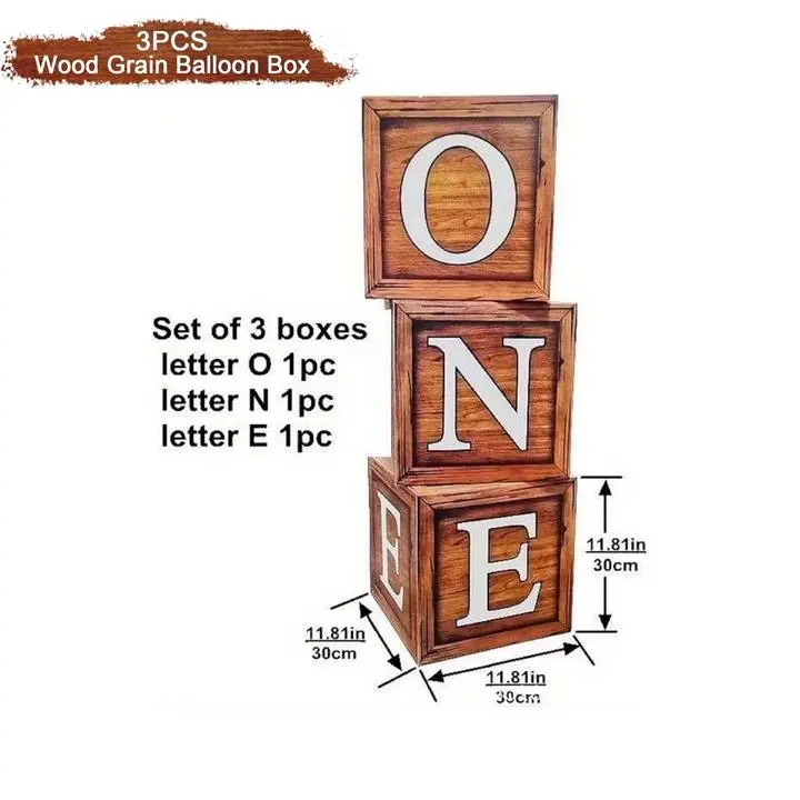 Wood Grain Printing Baby Shower Display Boxes Decoration, Neutral Gender Reveal Backdrop Brown Baby Stacking Blocks Backdrop for Kids Birthday Party