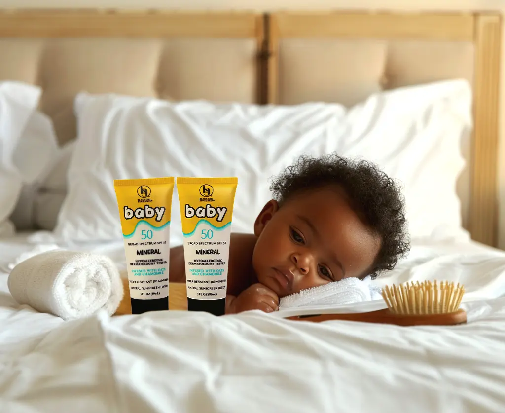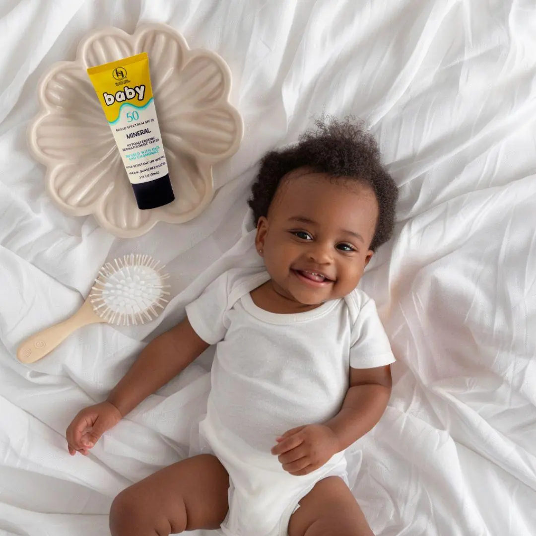 BGS Baby SPF 50 Sunscreen Lotion for the face and body is infused with ingredients such Oats and Chamomile to help soothe and nourish babies with delicate skin.