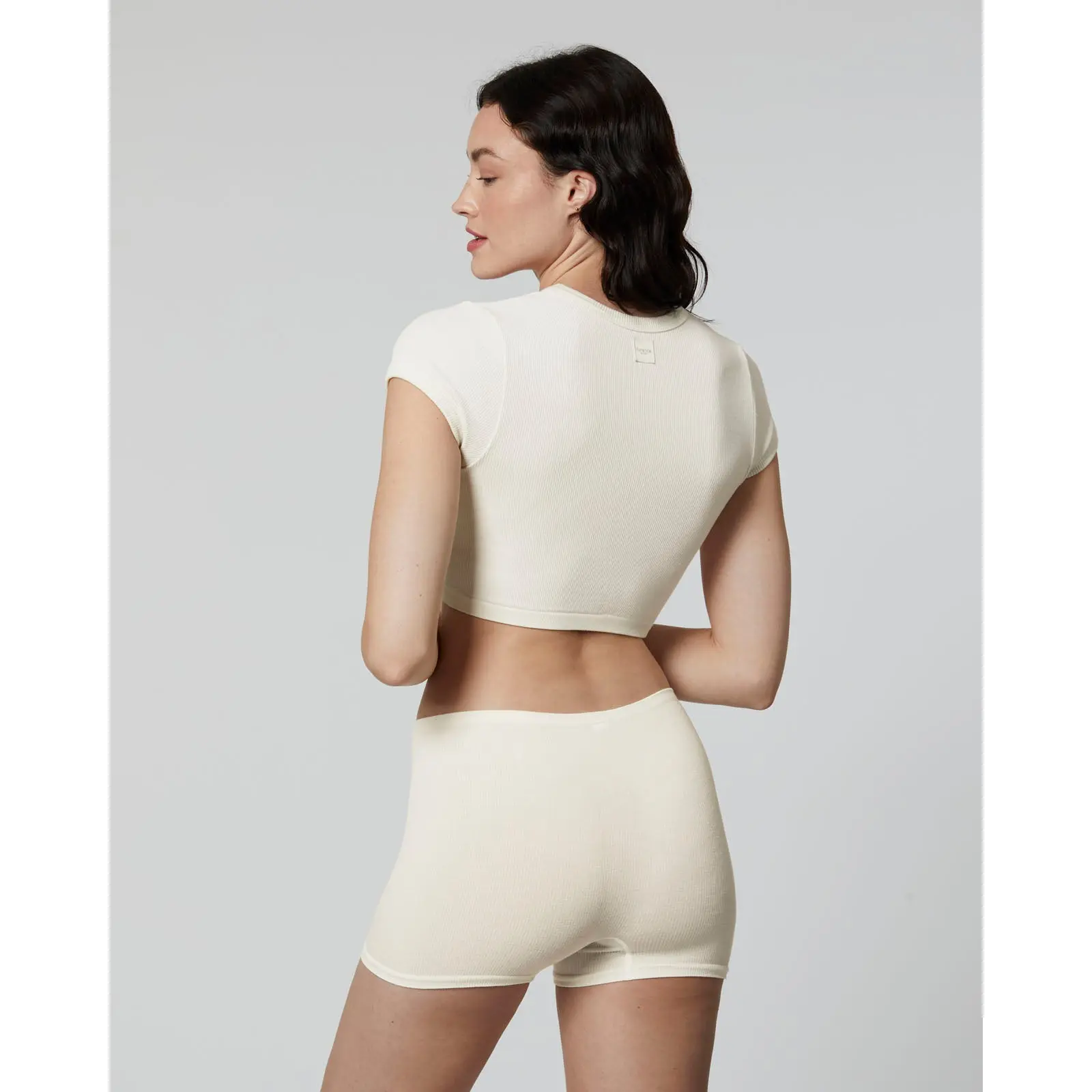 I am obsessed with Florence! I have many items from this brand and everything is so good! These shorties are so soft and comfortable. The material is viscose, polyamide, and elastane. Perfect blend of materials for under garments and comfort. I’m a size 2/3 and the small fits perfectly! Product quality: Amazing.