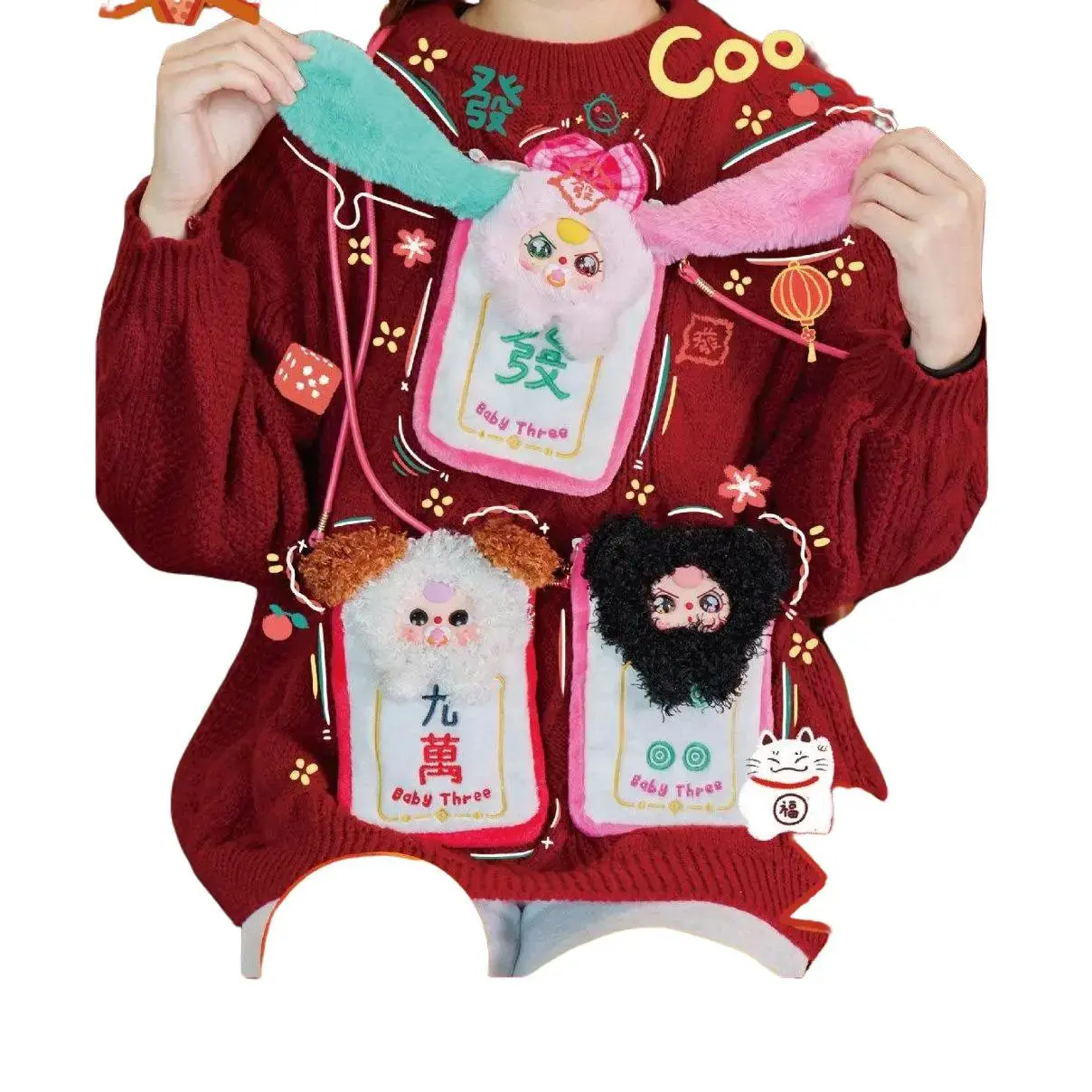 ·Product Overview:The Baby Three Mahjong Mobile Phone Pouch Bag is a unique accessory designed for mobile phone storage. It features a playful bunny plush doll, adding a touch of charm to your device. Perfect for those who love both functionality and style.
