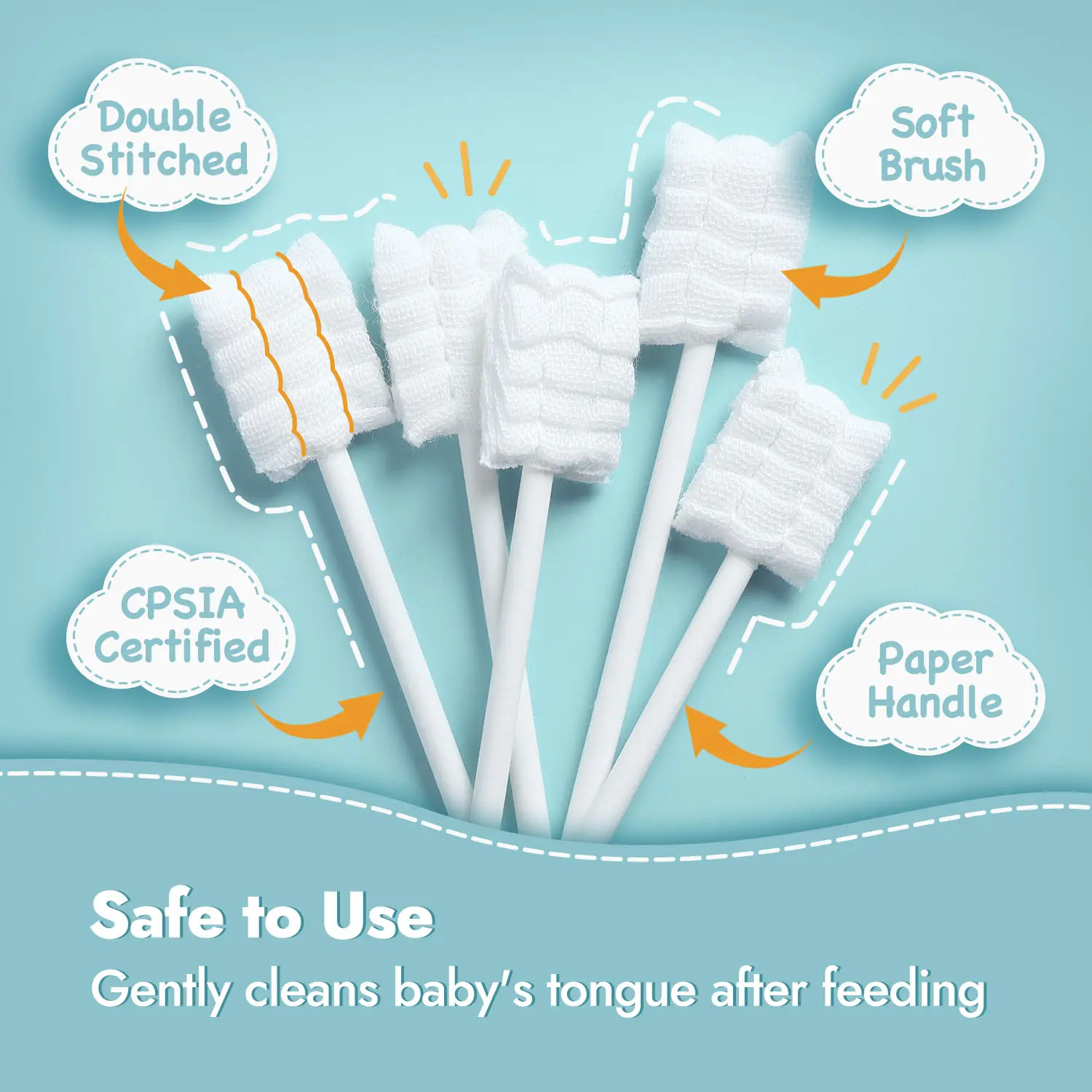 ·【Safe to Use】: CPSIA Certified. Made of 100% medical skim gauze. Sewed with double stitched tightly around the brush head, there is no risk of falling apart even baby bites or chews on it.