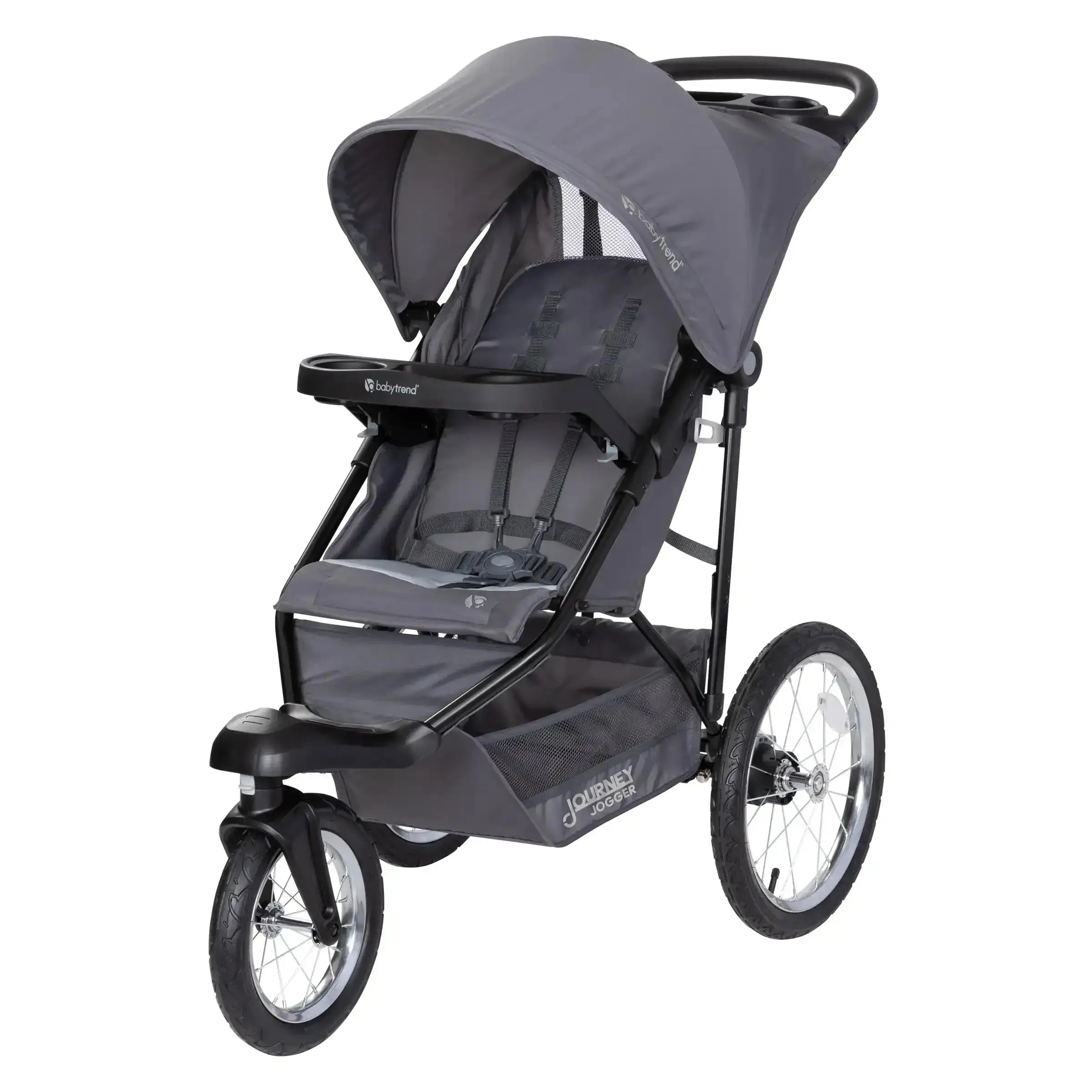 The Baby Trend® Journey Jogging Stroller makes every outing a fun activity. The parent tray, with two cup holders and a center console, offers a large space to keep your essentials. The child tray features cup holders and a snack area, so your little one can enjoy some treats while exploring the world. Every detail is built with care.